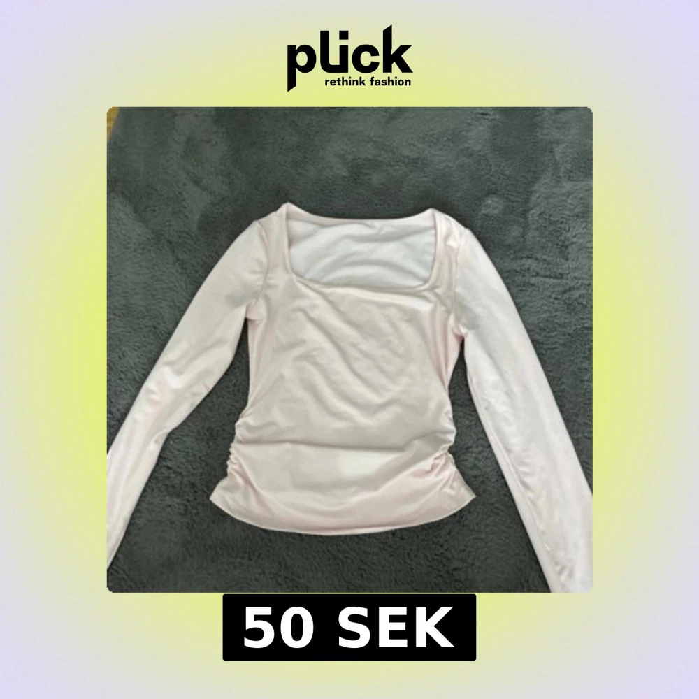 Säljer en söt ljusrosa långärmad topp med rynkade detaljer på sidorna. Toppen har en fyrkantig halsringning och är gjord i ett mjukt material. Perfekt för en stilren look! I storlek XS/S, aldrig använd är i ny skick.
