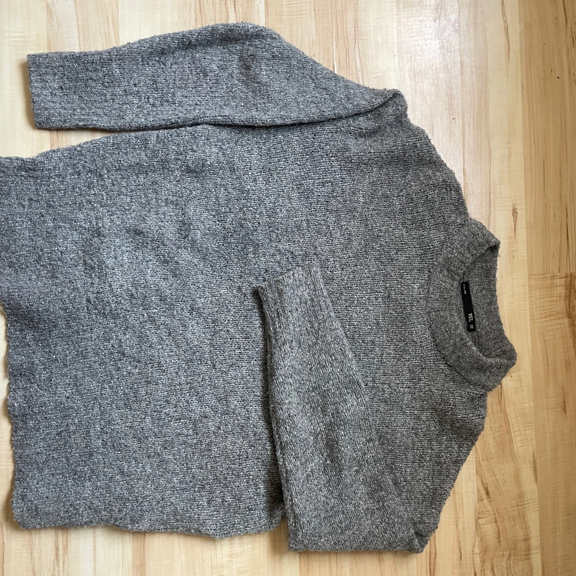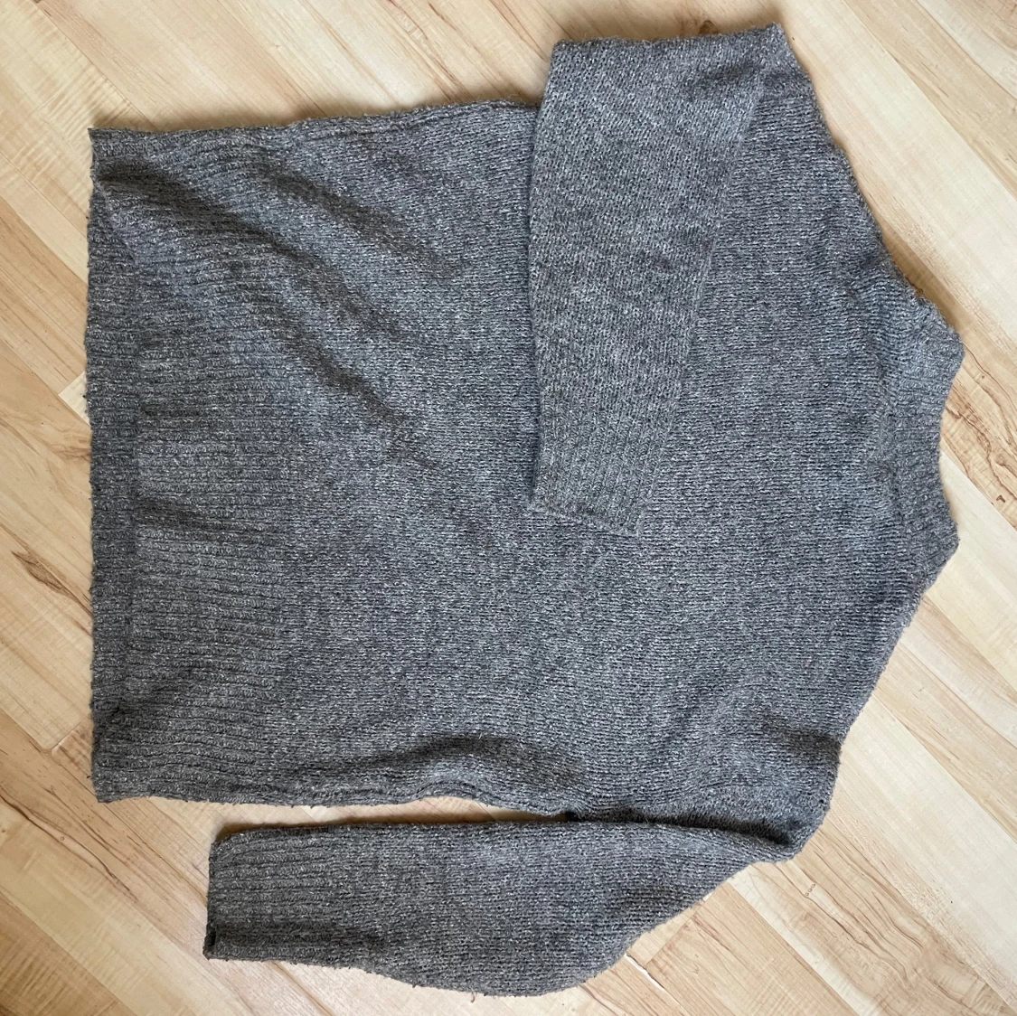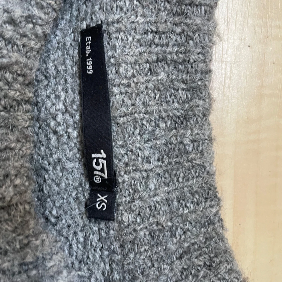 Säljer en stilren grå stickad tröja från 157. Tröjan har en klassisk design med långa ärmar och rund halsringning. Perfekt för kyligare dagar.