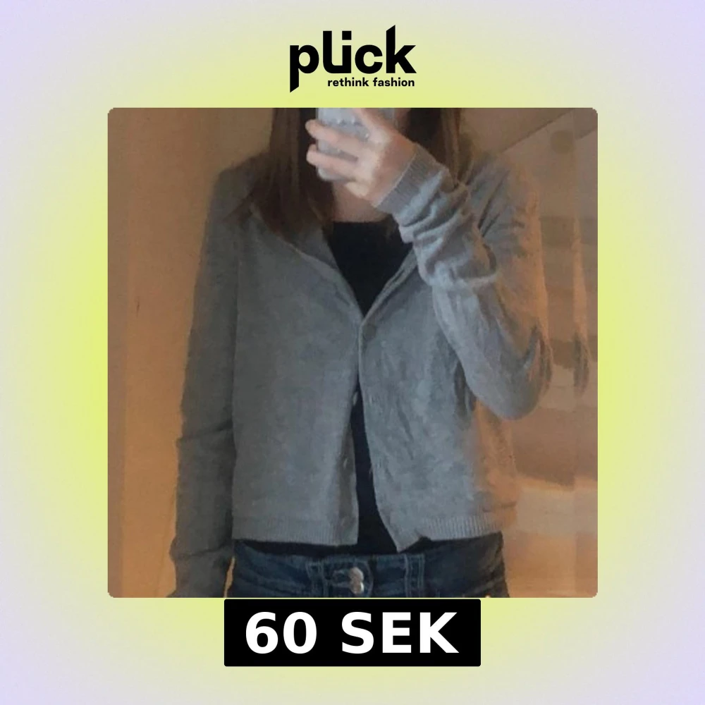 Säljer en stilren grå kofta med långa ärmar. Perfekt för lager-på-lager och passar till många olika outfits. Koftan har en enkel design med knappar framtill.