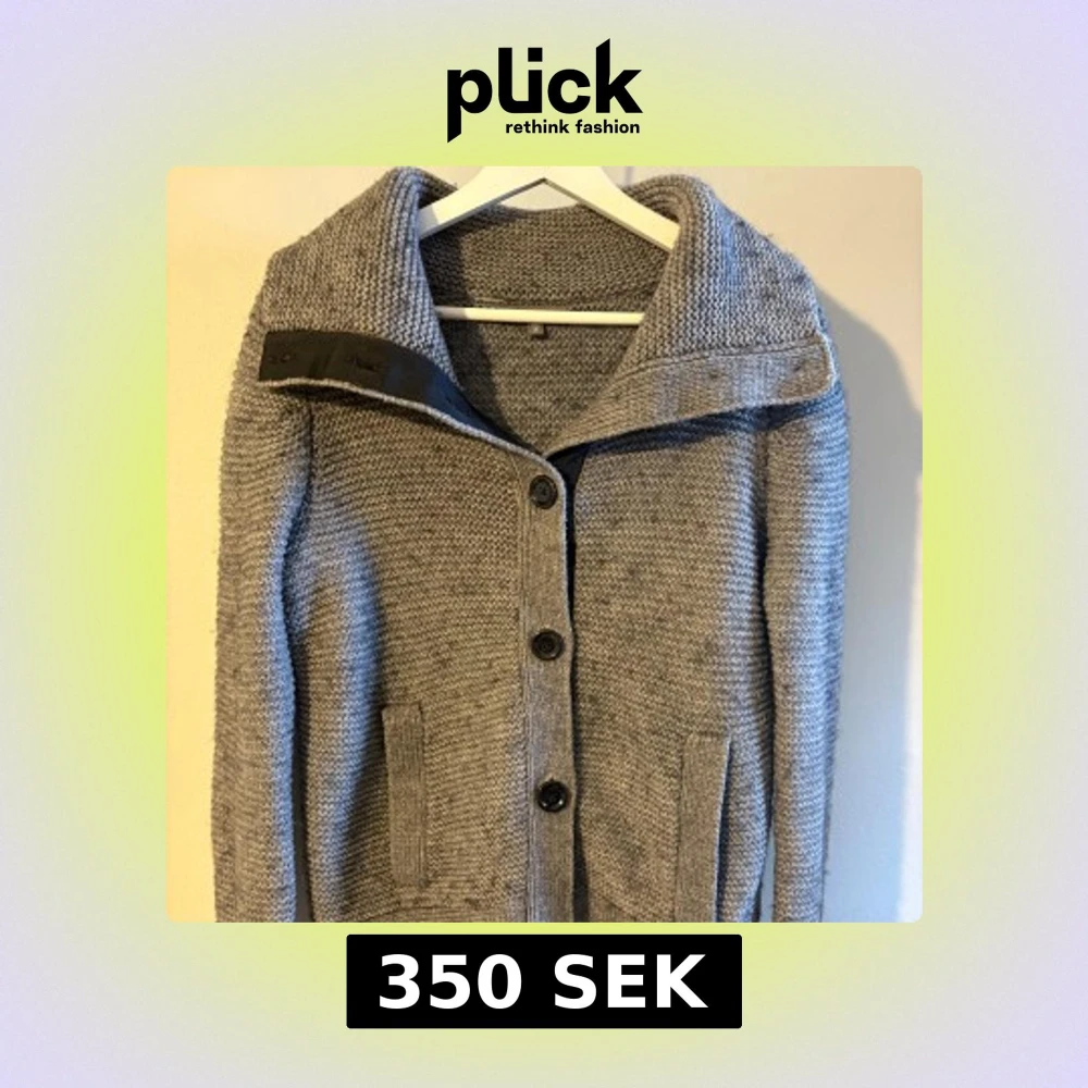 Grå stickad kofta med stora knappar