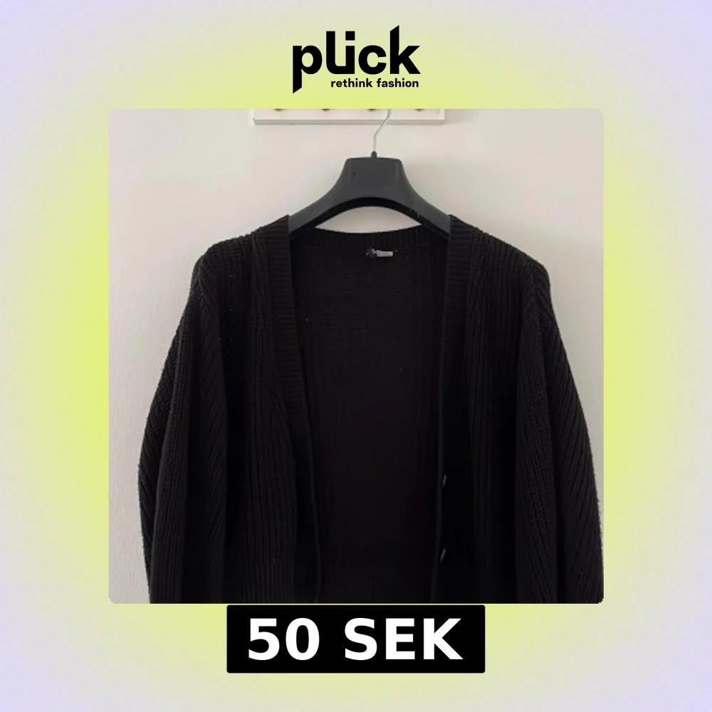 Svart stickad kofta från H&M Divided i storlek XS. Koftan har långärmade ärmar, ribbade muddar och öppen front. Perfekt för lager-på-lager och chill vibes. Enkel att matcha med allt i garderoben.