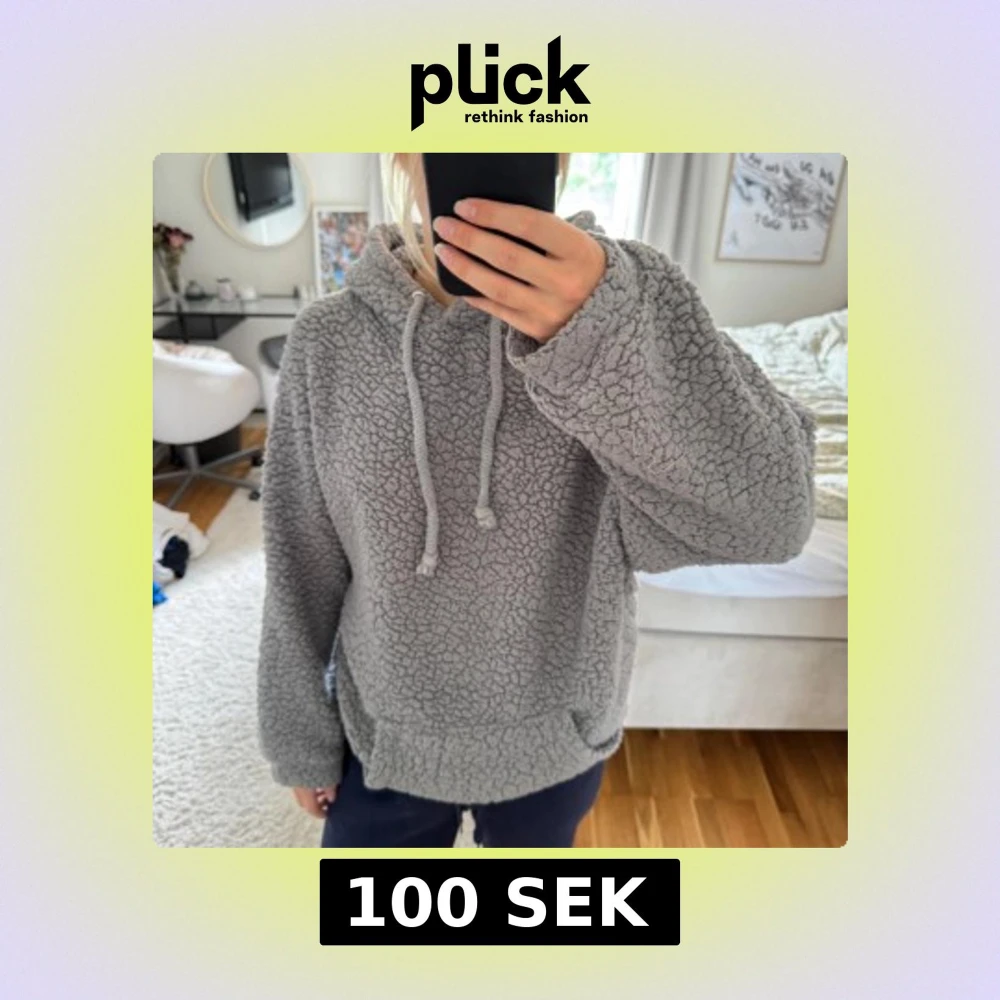 Supermjuk och oversized grå teddy hoodie med stor ficka framtill och dragsko i huvan. Perfekt för kalla dagar när du vill vara extra cozy. Långärmad och fluffig med relaxed fit🥰