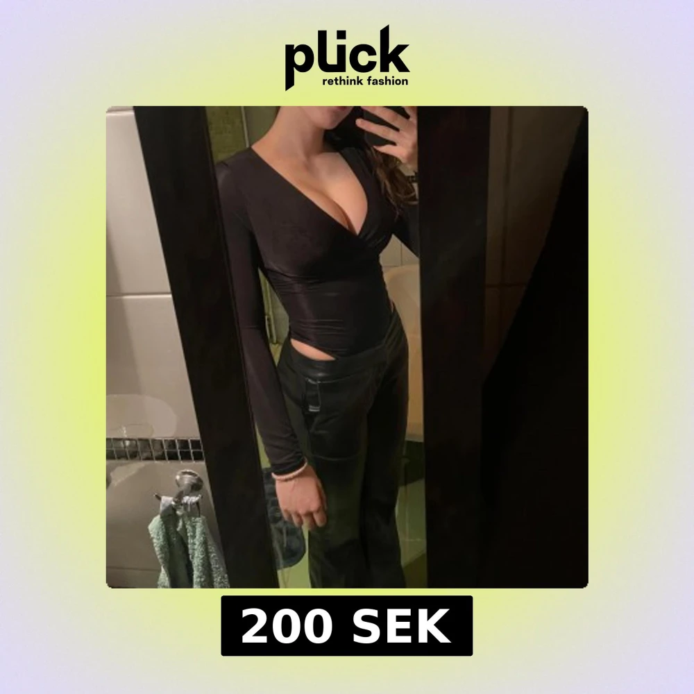 Snygg svart omlott body med långärmade ärmar och djup v-ringad.
