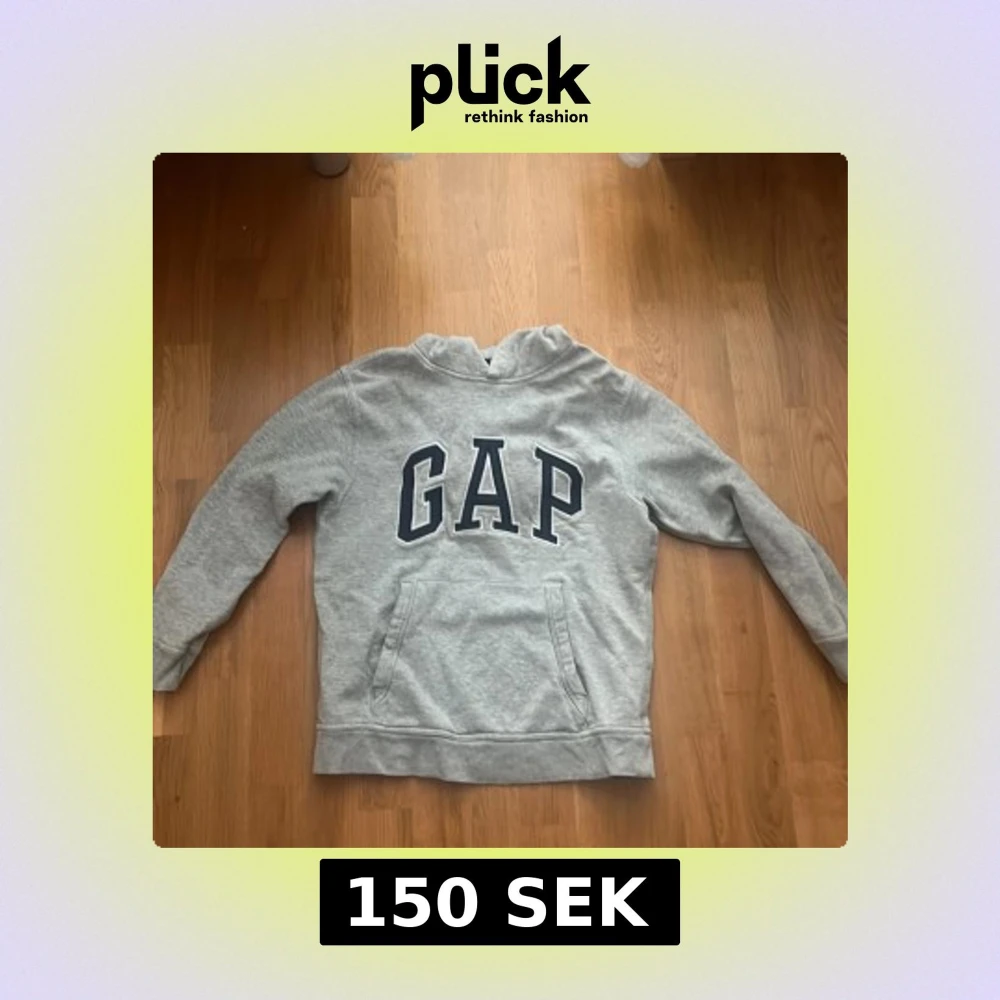 Klassisk grå hoodie från GAP med stor logga framtill i mörkblått. Tröjan har huva, magficka och långa ärmar. Perfekt för en avslappnad och cool stil.