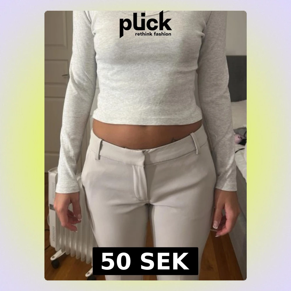 Säljer en ljusgrå croppad långärmad tröja med rundad hals. Tröjan har en slim passform och är tillverkad i mjuk bomullsmix som känns skön mot huden. Perfekt för dig som gillar stilrena och enkla plagg med modern touch.
