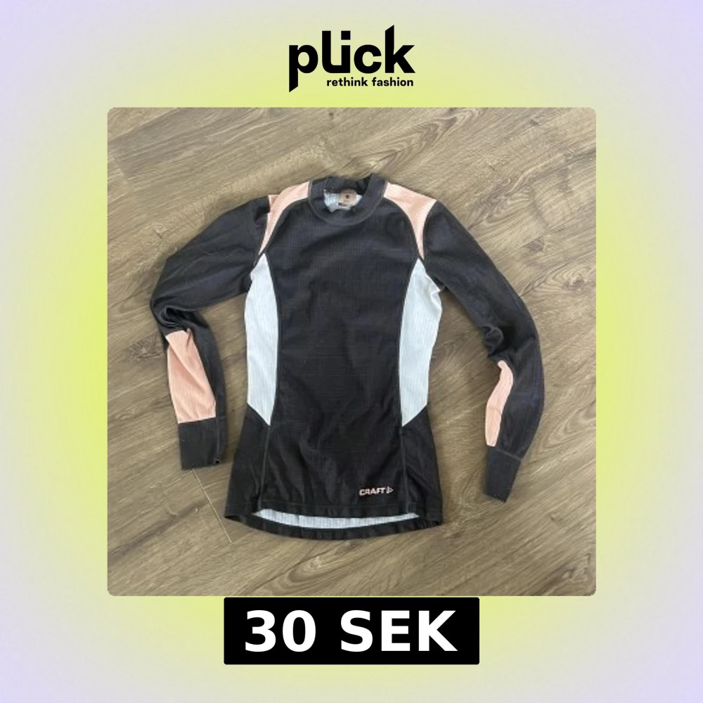 Säljer en svart långärmad träningströja från Craft med ljusgrå och ljusrosa paneler på sidorna och ärmarna. Perfekt för löpning eller annan träning. Tight passform och hög hals.