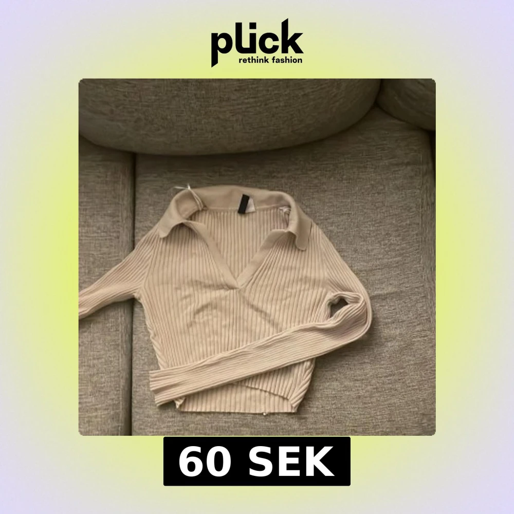 Säljer en beige ribbad långärmad tröja från Divided. Tröjan har v-ringning, krage och är croppad i modellen. Perfekt för dig som gillar en stilren och trendig look. Passar till både jeans och kjol. Väldigt stretchig hade passat S & M också