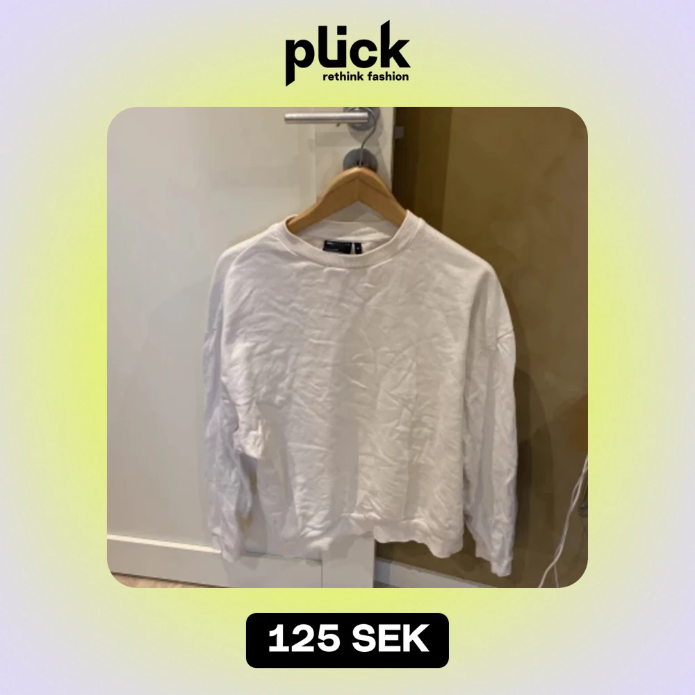 Säljer en stilren vit tröja från ASOS DESIGN i storlek XS. Tröjan är perfekt för en avslappnad look och har en normal passform med långa ärmar. Materialet känns mjukt och bekvämt, perfekt för både vår och höst. Passar till det mesta i garderoben!