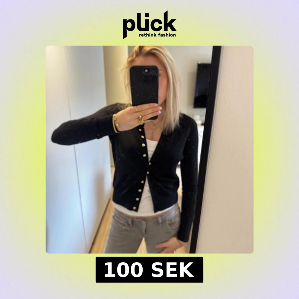 Svart kofta med söta guldknappar, supersnygg att slänga över en söt topp. Koftan har inga defekter då den aldrig används💗