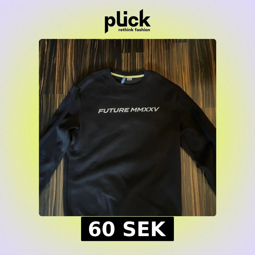 Svart sweatshirt från Divided i storlek XS med trycket 'FUTURE MMXXV' framtill och en stor grafisk triangel med samma text på ryggen. Använd bara några få gånger. 60kr + frakt, eller bara 60 kr om man hämtar den hos mig👍
