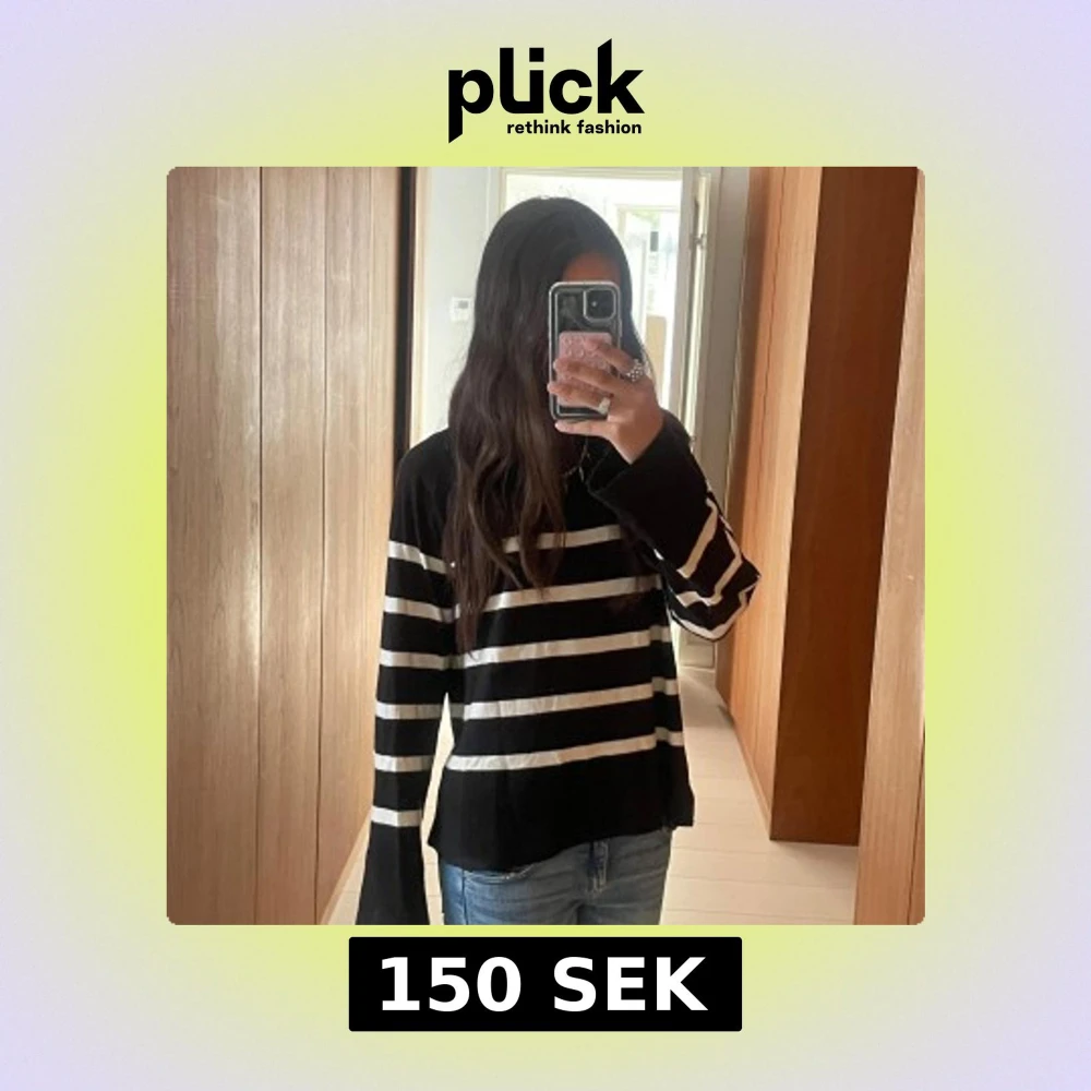 Säljer en svart tröja med vita ränder. Nästan helt ny