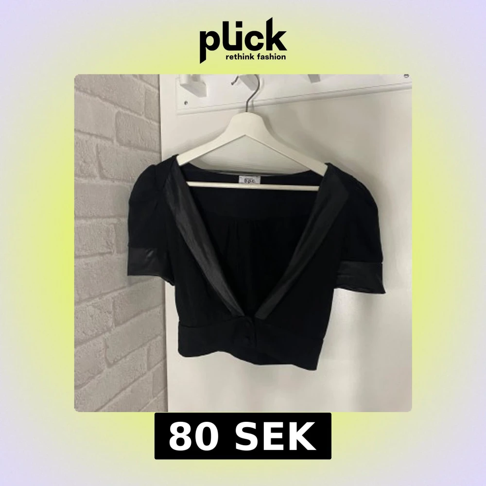 Kortare kortärmad kofta, finns två knappt längst ner som går att knäppa upp. Storlek xs