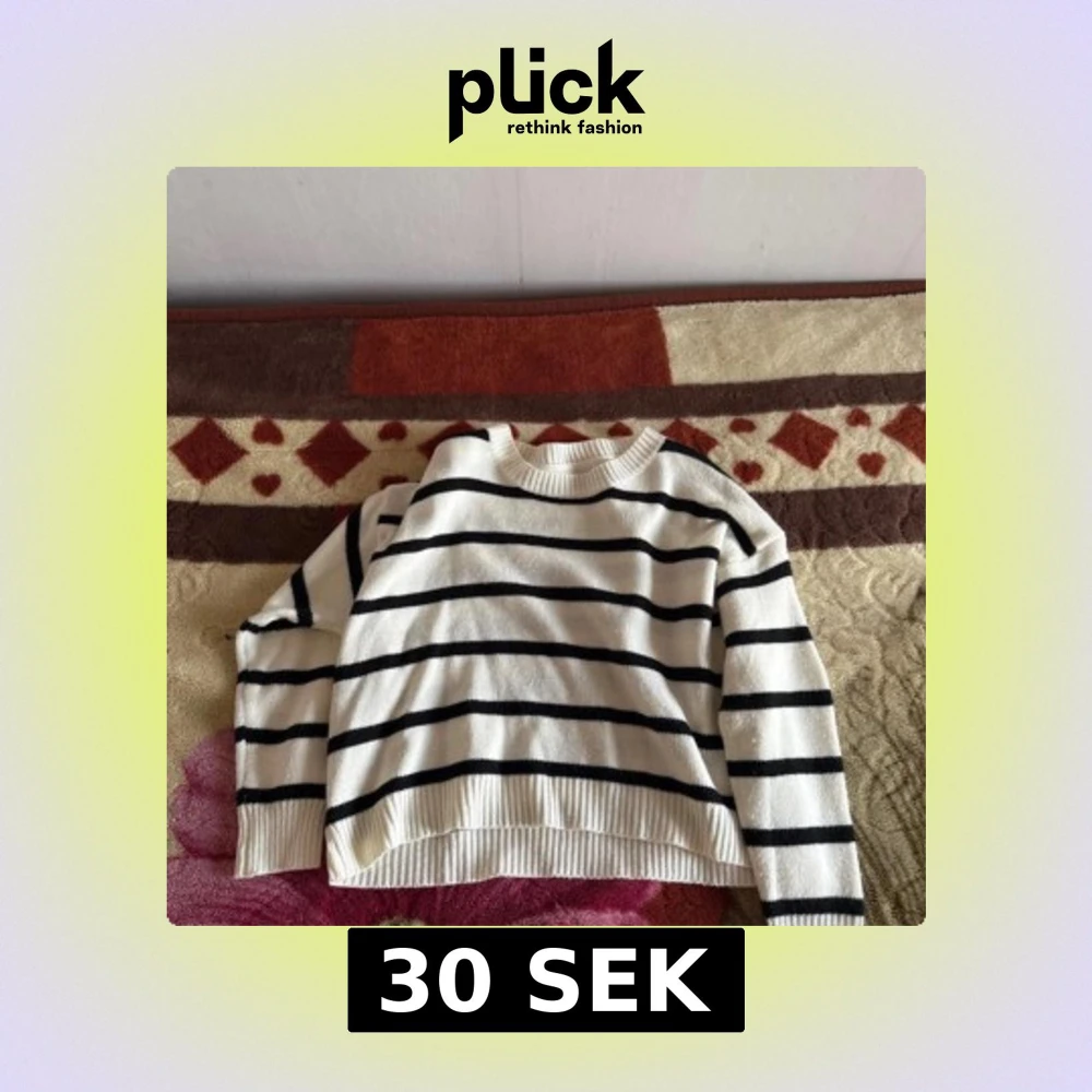 Snygg stickad tröja i vitt med svarta horisontella ränder. Tröjan har rund hals, långa ärmar och ribbade muddar vid ärmslut och nederkant. Perfekt för dig som gillar klassisk och chill stil. Passar till jeans eller kjol för en enkel look.