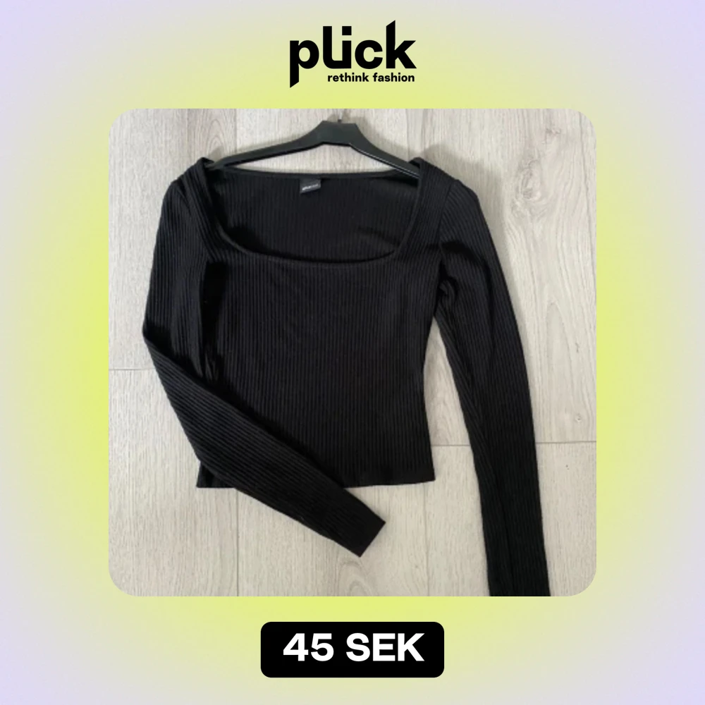 Svart Långärmad ribbad tröja från Gina i storlek XS 🤍