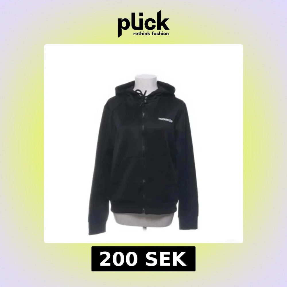 Svart hoodie från McKenzie i storlek XS. Klassisk modell med dragkedja framtill, snörning i huvan och fickor på magen. Perfekt för chill dagar eller när du vill ha en enkel och stilren look. Mjukt material och diskret logga på bröstet.