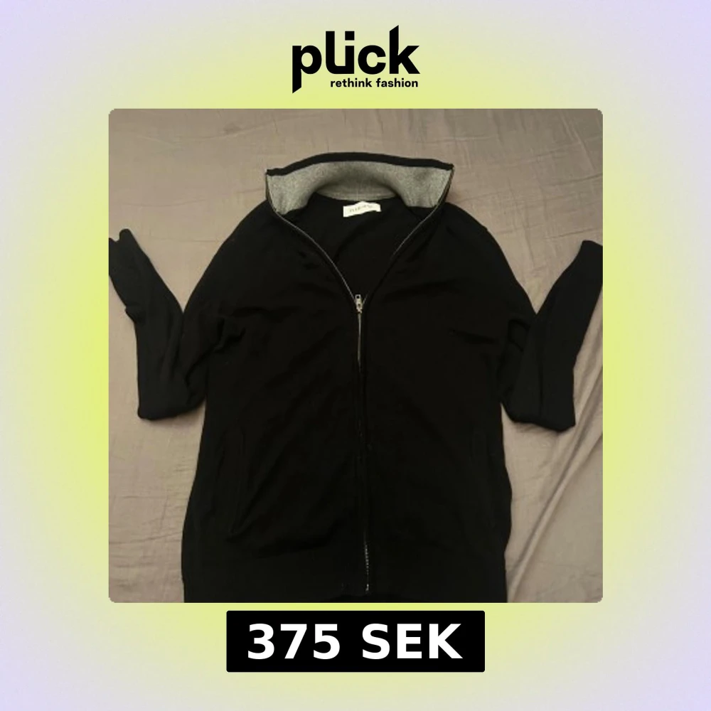 Svart kofta från Pier One med hel dragkedja och ribbad grå insida på kragen. Långärmad och i mjukt material, perfekt för lager-på-lager. Enkel och stilren design som funkar till det mesta. Den är rikgtigt fet. Priset går att diskuteras👍