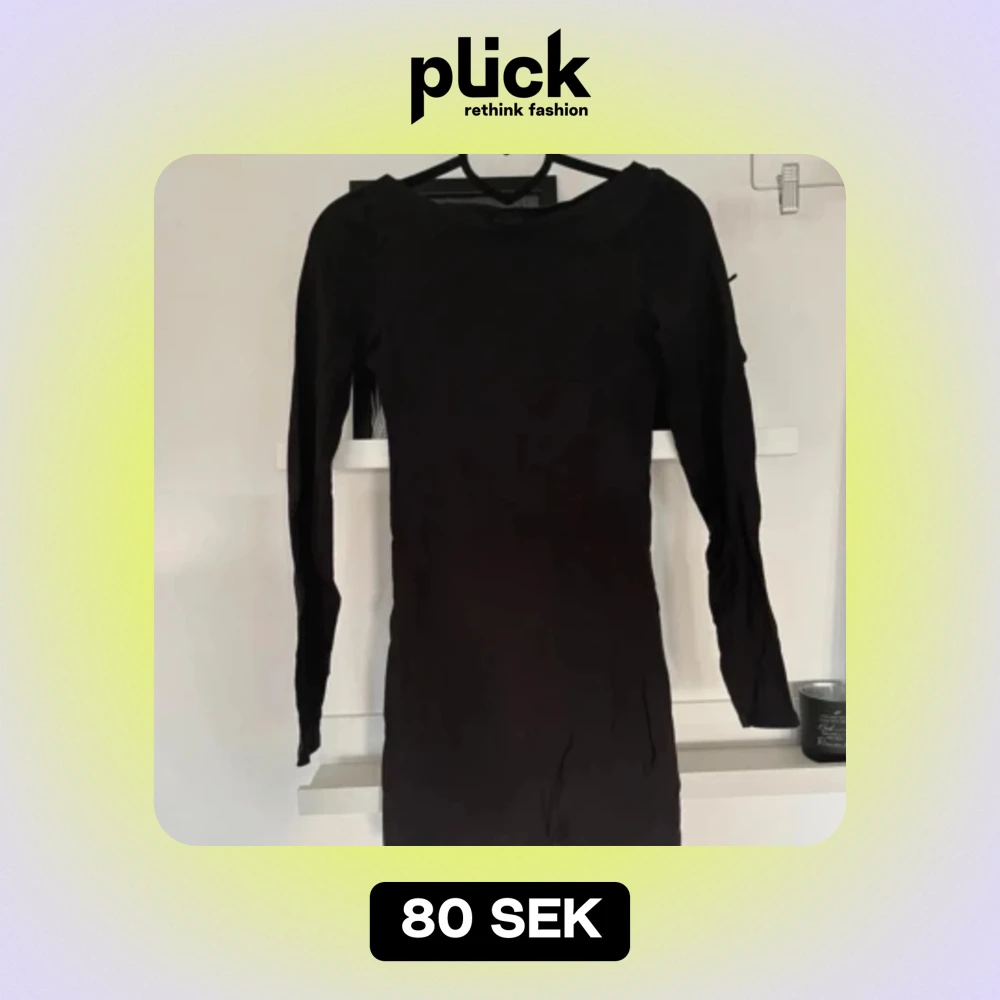 Storlek xs Minns inte om den är köpt som kort klänning, tunika eller längre tröja. Möjligtvis inte lika svart som ny.