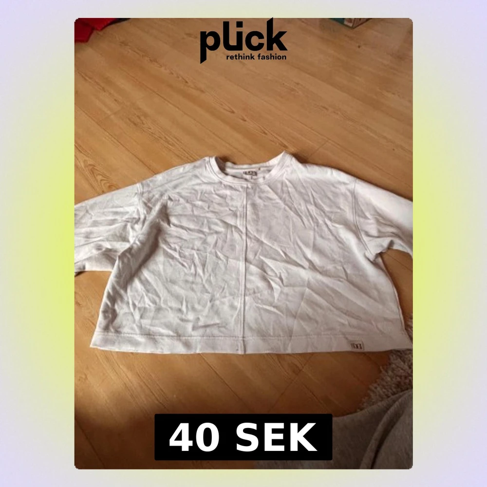 Säljer en vit croppad sweatshirt från Le Don De Vie i storlek XS. Tröjan har lång ärm, rund hals och en synlig söm som går vertikalt både fram och bak. Materialet är mjuk bomull och passformen är loose för en chill vibe.