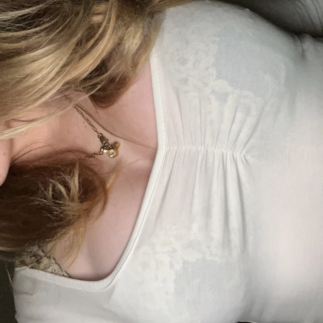 Lite genomskinlig och är ganska u-ringad, tyget drar ihop sig vid brösten. Säljer i både svart och vit (samma storlek på båda)
