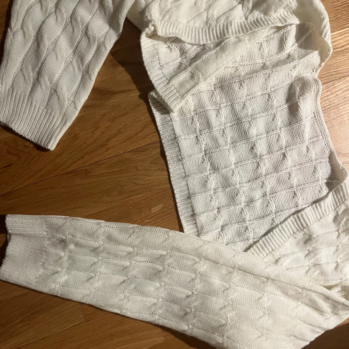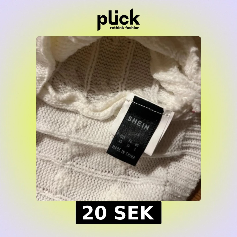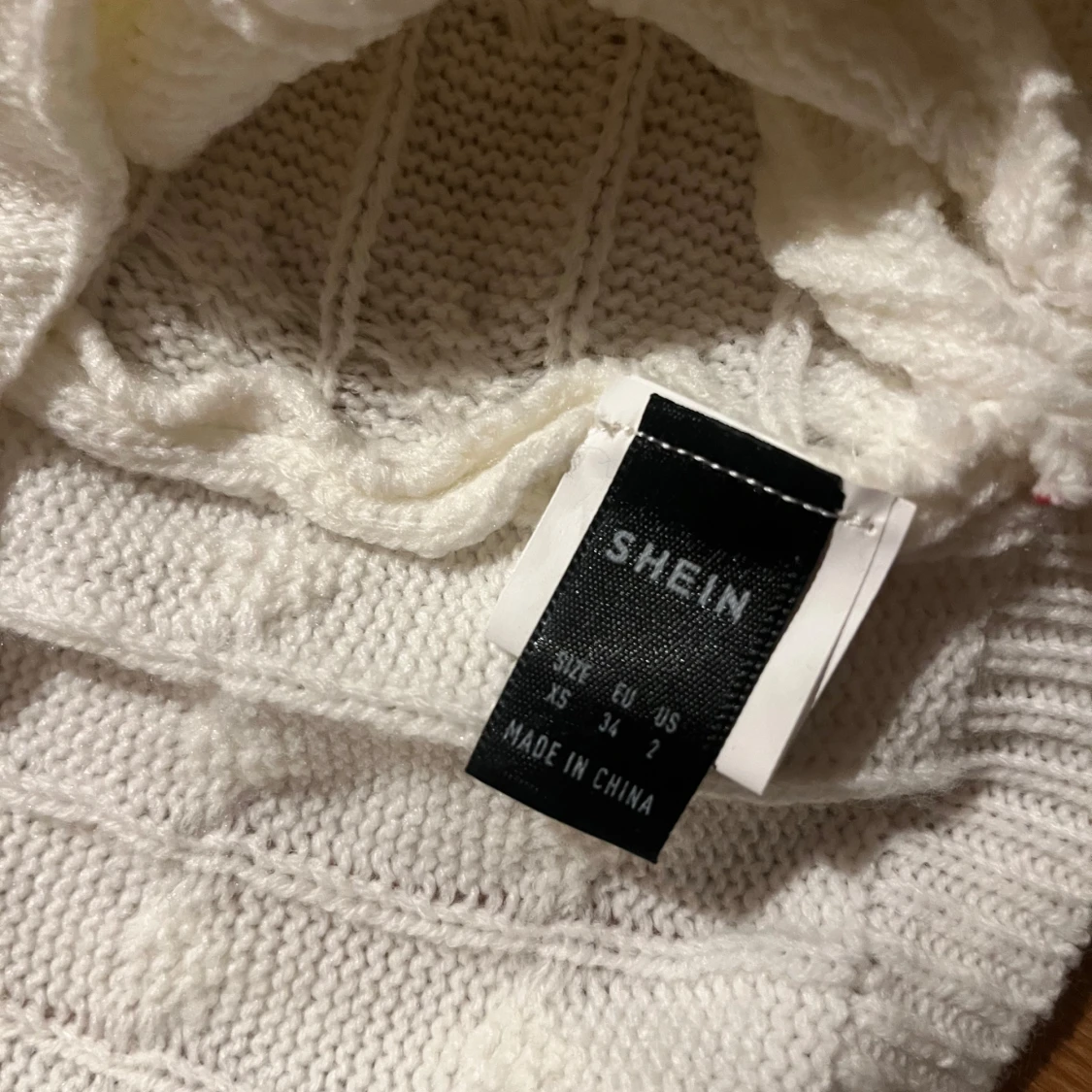 Säljer en vit stickad tröja från Shein. Tröjan har ett snyggt stickat mönster och långa ärmar. Perfekt för kyligare dagar. Passar bra till både jeans och kjol.