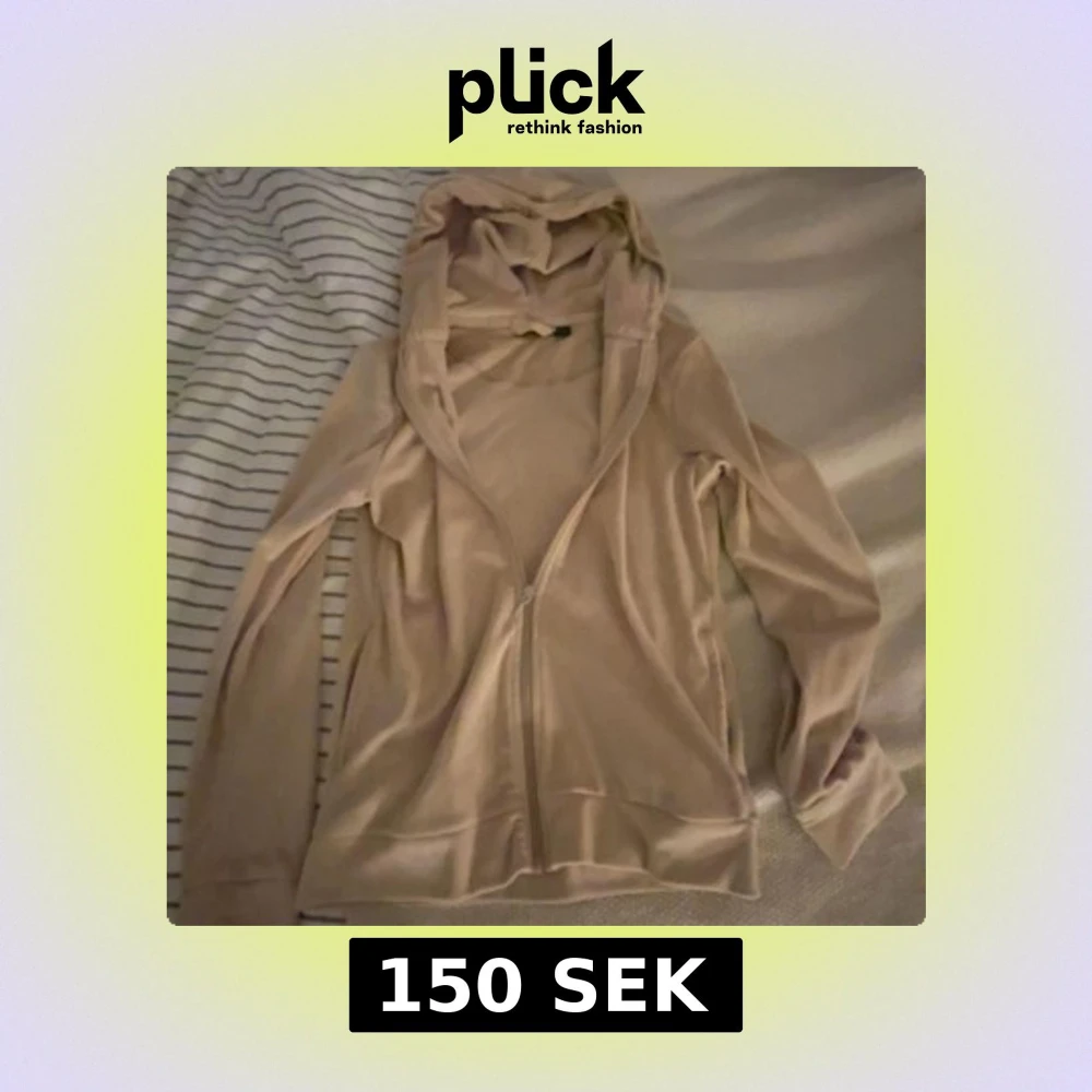 Snygg beige hoodie med dragkedja framtill och huva. Tröjan har långa ärmar och är tillverkad i ett mjukt, tunt material som känns skönt mot huden. Perfekt för lager-på-lager och chill dagar.
