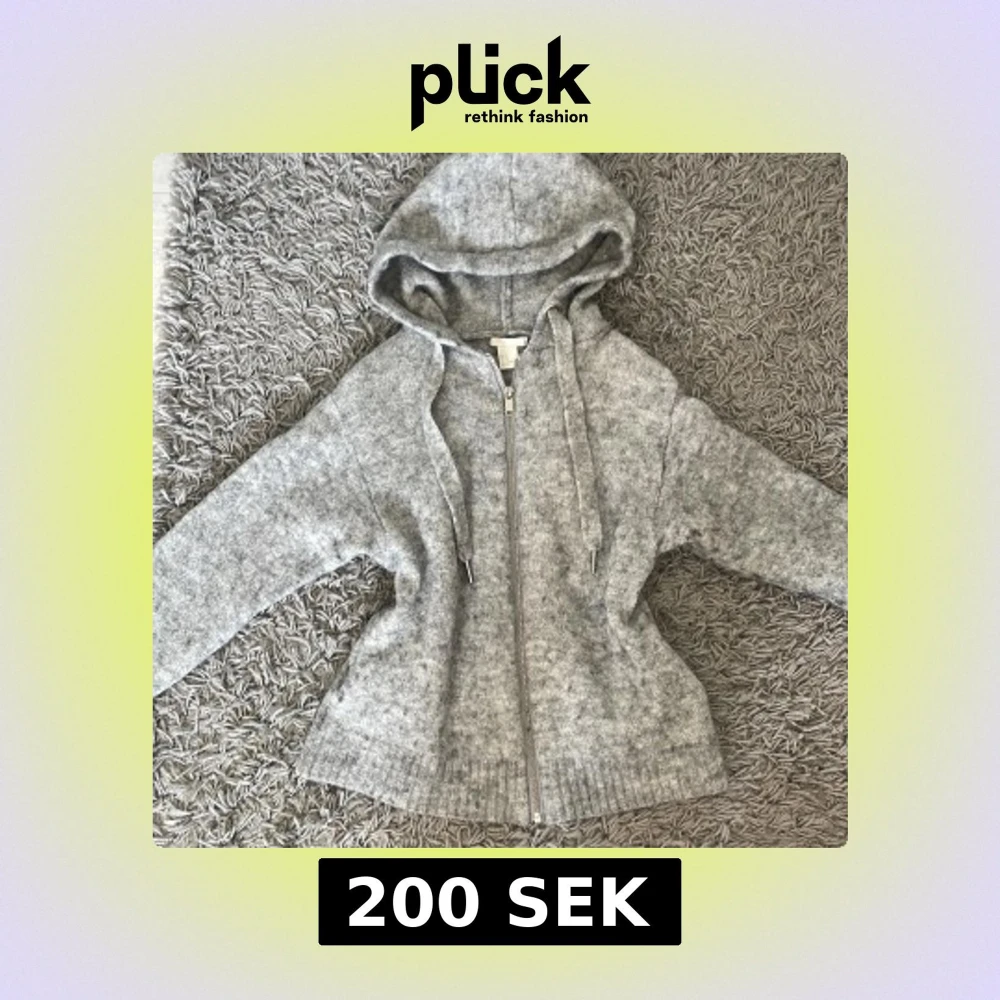 Mysig grå stickad hoodie från H&M i storlek XS. Den har huva, dragkedja framtill och ribbade muddar vid ärmslut och nederkant. Den har även fickor. Använd fåtal gånger.