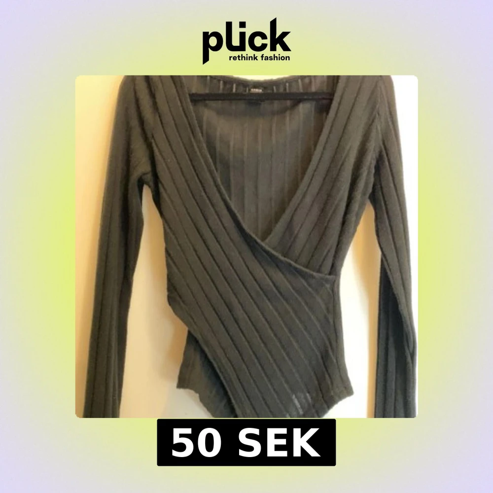 Säljer en stilren svart ribbad omlottopp med lång ärm och v-ringning. Perfekt för en elegant look. Passar bra till både jeans och kjol. Den är i nyskick från Shein i storlek XS