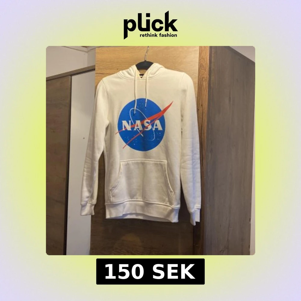 Vit hoodie från Mister Tee i storlek XS med stort NASA-tryck i blått och rött framtill. Tröjan har huva med snörning och en klassisk känguruficka. Perfekt för dig som gillar rymd och streetstyle.
