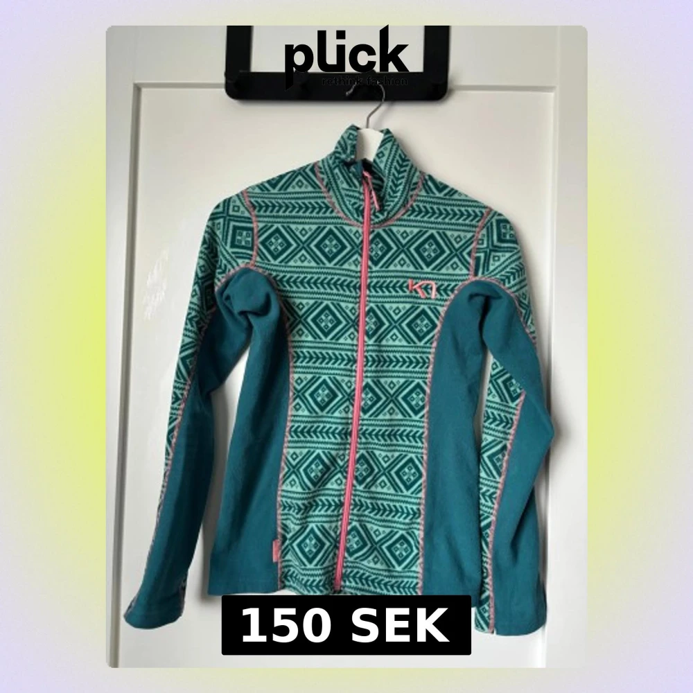 Säljer en snygg turkos och mörkgrön fleecejacka från Kari Traa i storlek XS. Är i bra skick men en liten reva längst ner på ena armen (se sista bilden). Perfekt o ha under jacka för extra lager!