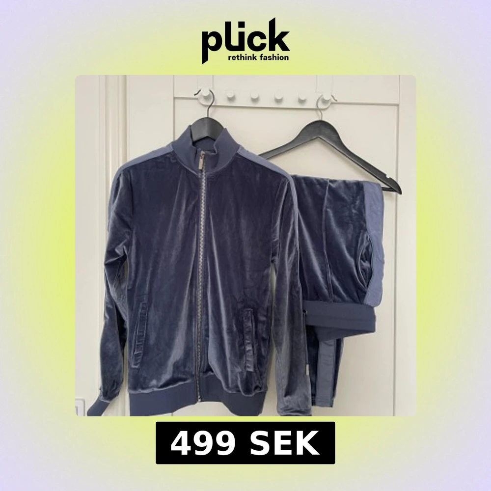Säljer ett mörkblått veloursetfrån Maniére De Voir med dragkedja framtill och ribbade muddar. Tröjan har en sportig look med ståkrage och är tillverkad i mjuk polyesterblandning. Perfekt för en avslappnad och trendig stil. Mått byxor: 68 cm midja (stretch), 95cm längd utsida, 73cm längd insida Överdel: ärmlängd armhåla ner 52cm, bröstvidd 40 cm, längd 64cm (axel och ner)