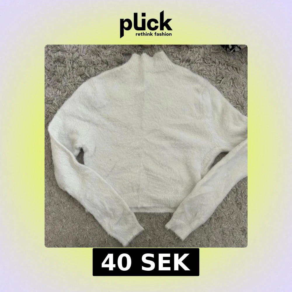 Säljer en supermjuk och fluffig vit tröja med hög krage. Perfekt för kyliga dagar när du vill känna dig både stilren och bekväm. Tröjan har långa ärmar och en mysig känsla. Passar perfekt till jeans eller kjol för en avslappnad look.