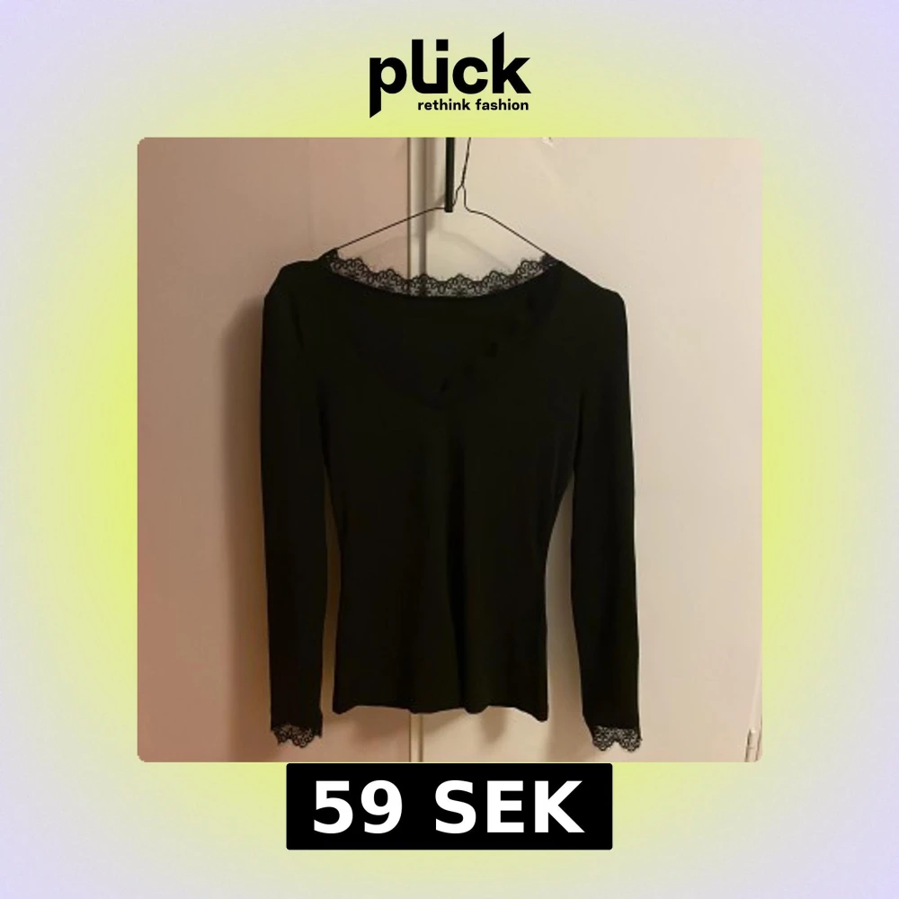 (Den är oanvänd) Säljer en svart långärmad topp med snygga spetsdetaljer vid halsringningen och ärmsluten. Toppen har en figurnära passform och är perfekt för dig som gillar en stilren look med en touch av romantik. Materialet känns mjukt och stretchigt.💕