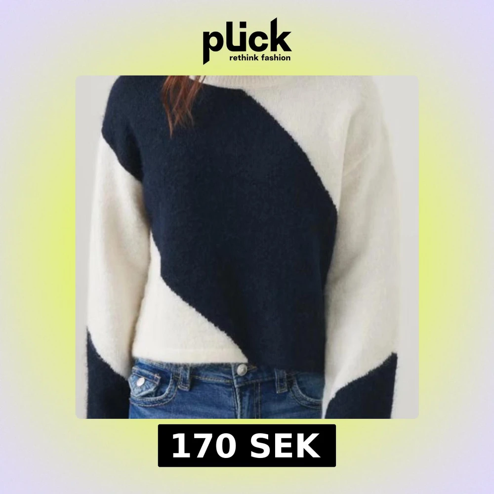 Säljer en stickad tröja i svart och vitt med ett diagonalt mönster från gina💞 . nästan alldrig andvänd fint skick som ny