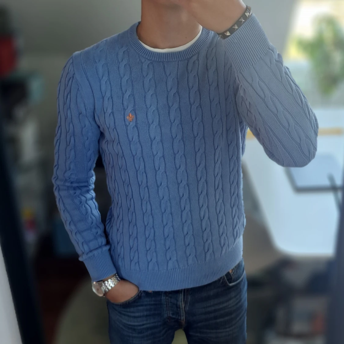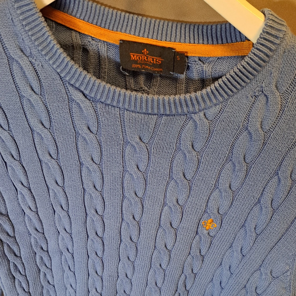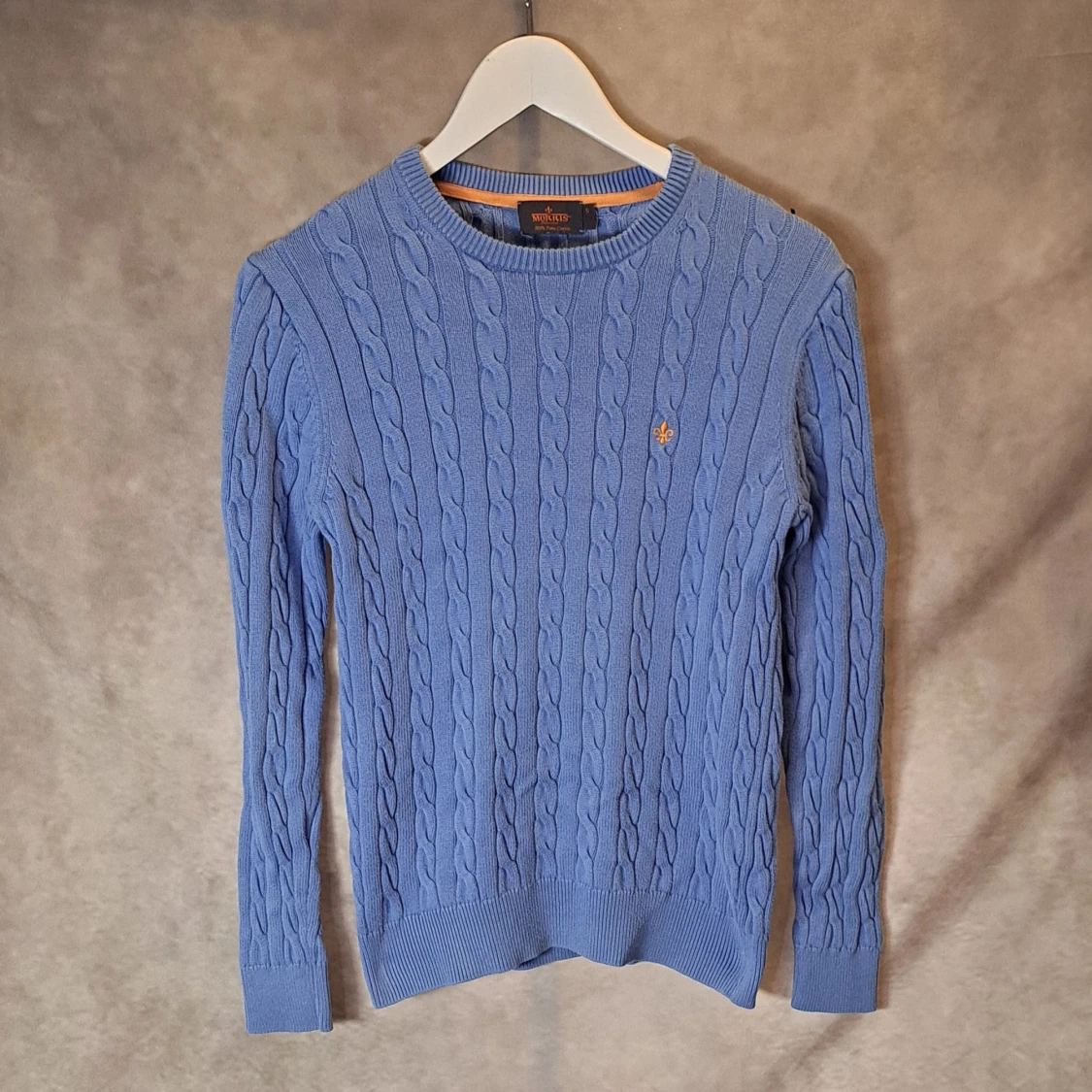 Väldigt snygg Kabelstickad tröja från Morris! | Mycket bra skick: 8,5/10 | Stl: S på lappen men sitter bättre som Xs | Modellen på bilden är 175cm lång, passar dig bäst om du är cirka 162-175cm lång |
