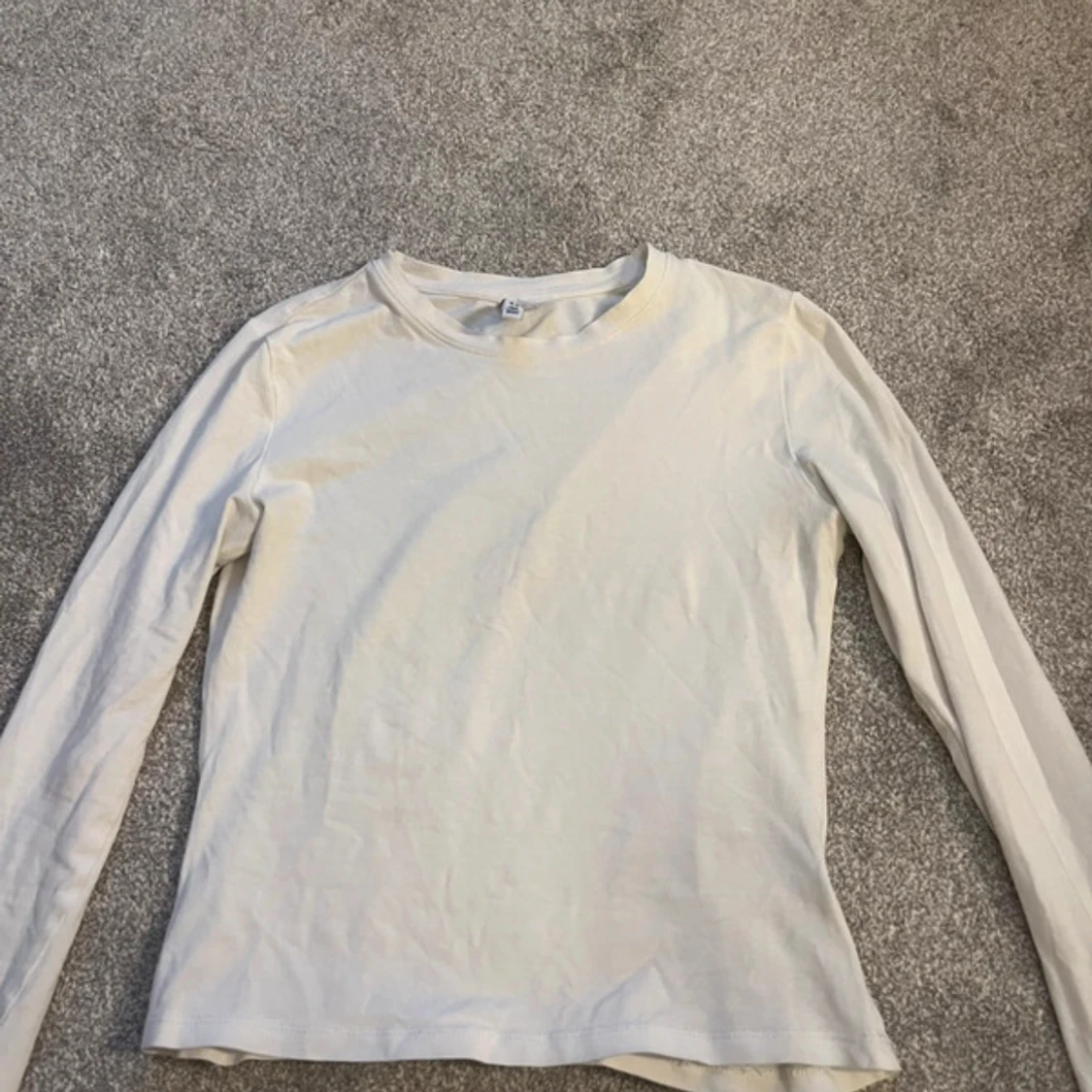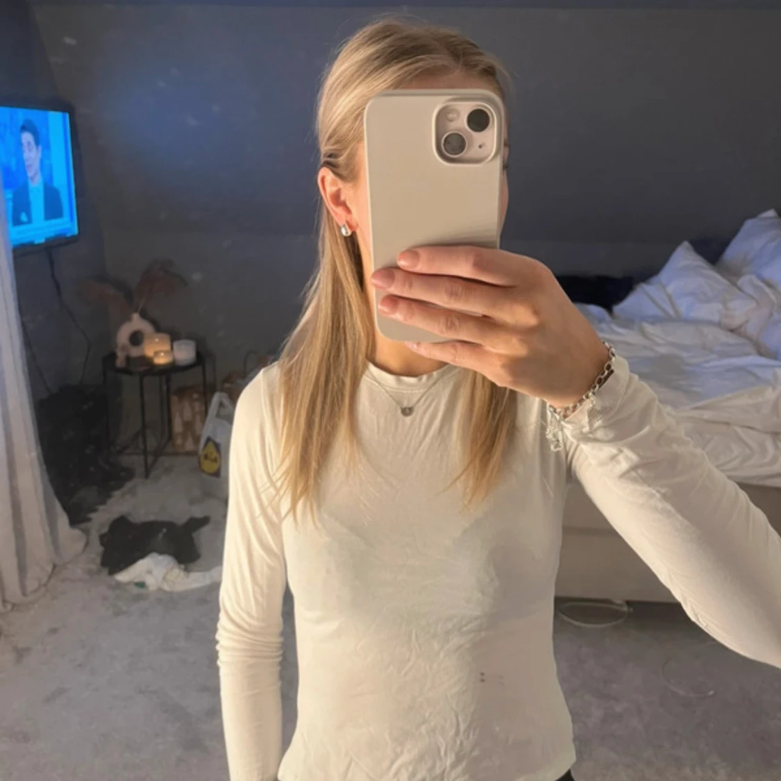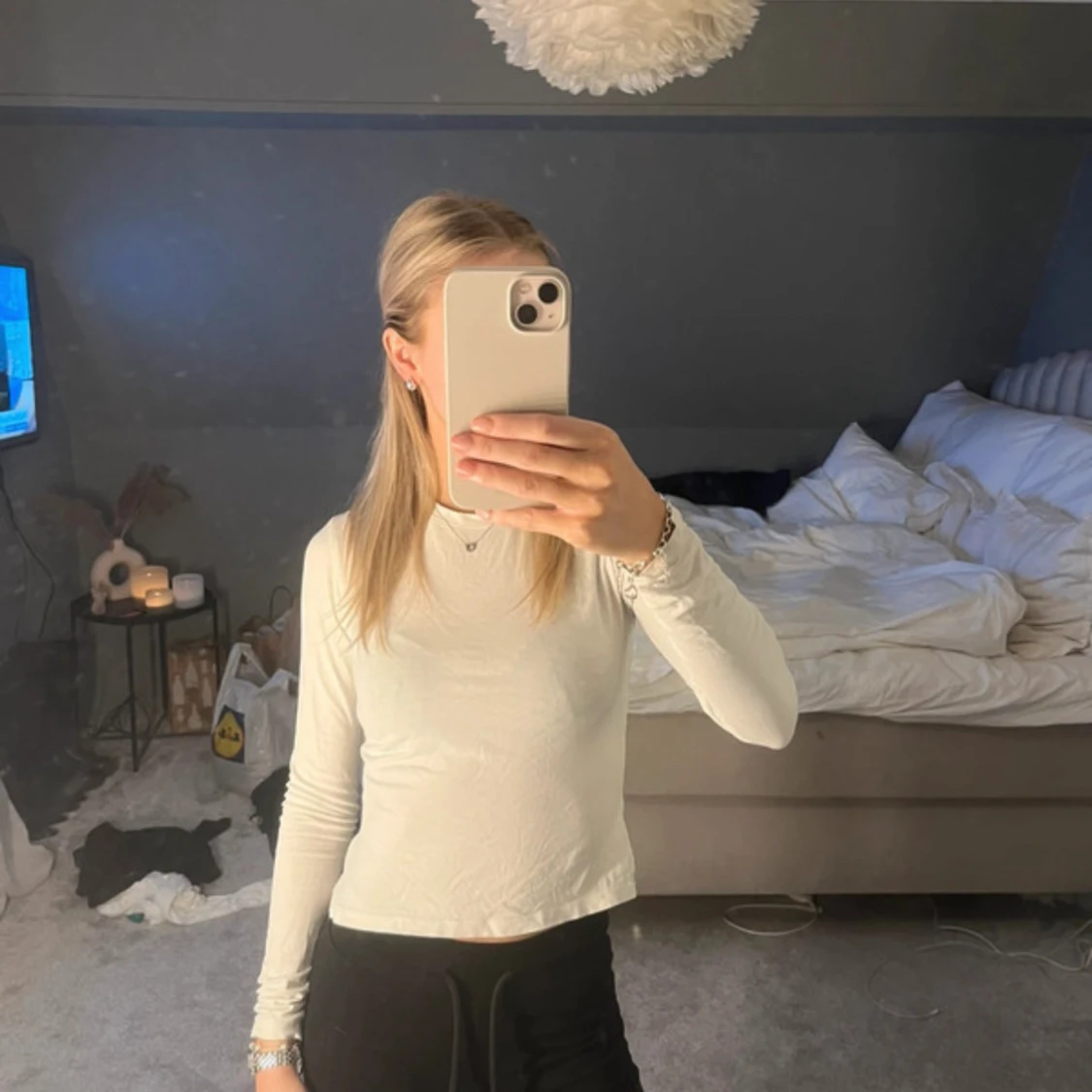 Säljer en enkel och stilren vit långärmad topp från H&M. Modellen är figurnära med rund halsringning. Perfekt att matcha med jeans eller kjol.