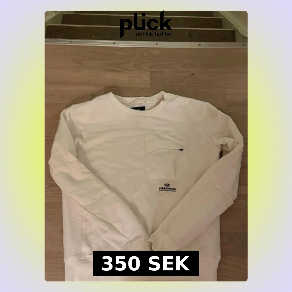 Parajumper tröja med en ficka på brösten vit och stilren. Nypris 999kr. Skriv vid funderingar.