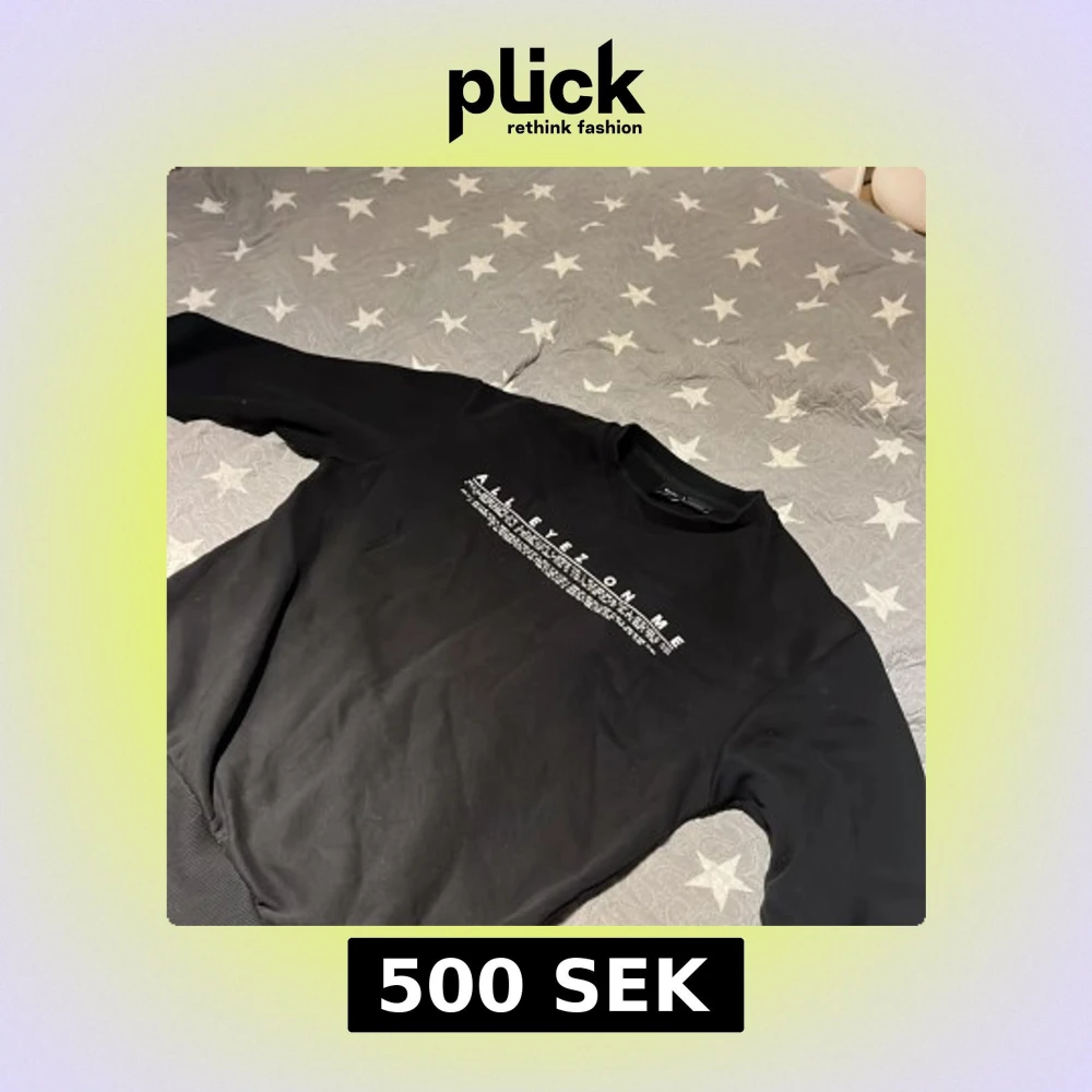 Snygg svart sweatshirt med tryck av Tupac och texten 'All Eyes On Me'. Tröjan har långa ärmar och en bekväm passform. Perfekt för dig som vill ha en stilren och cool look. I st xs men passar s bäst