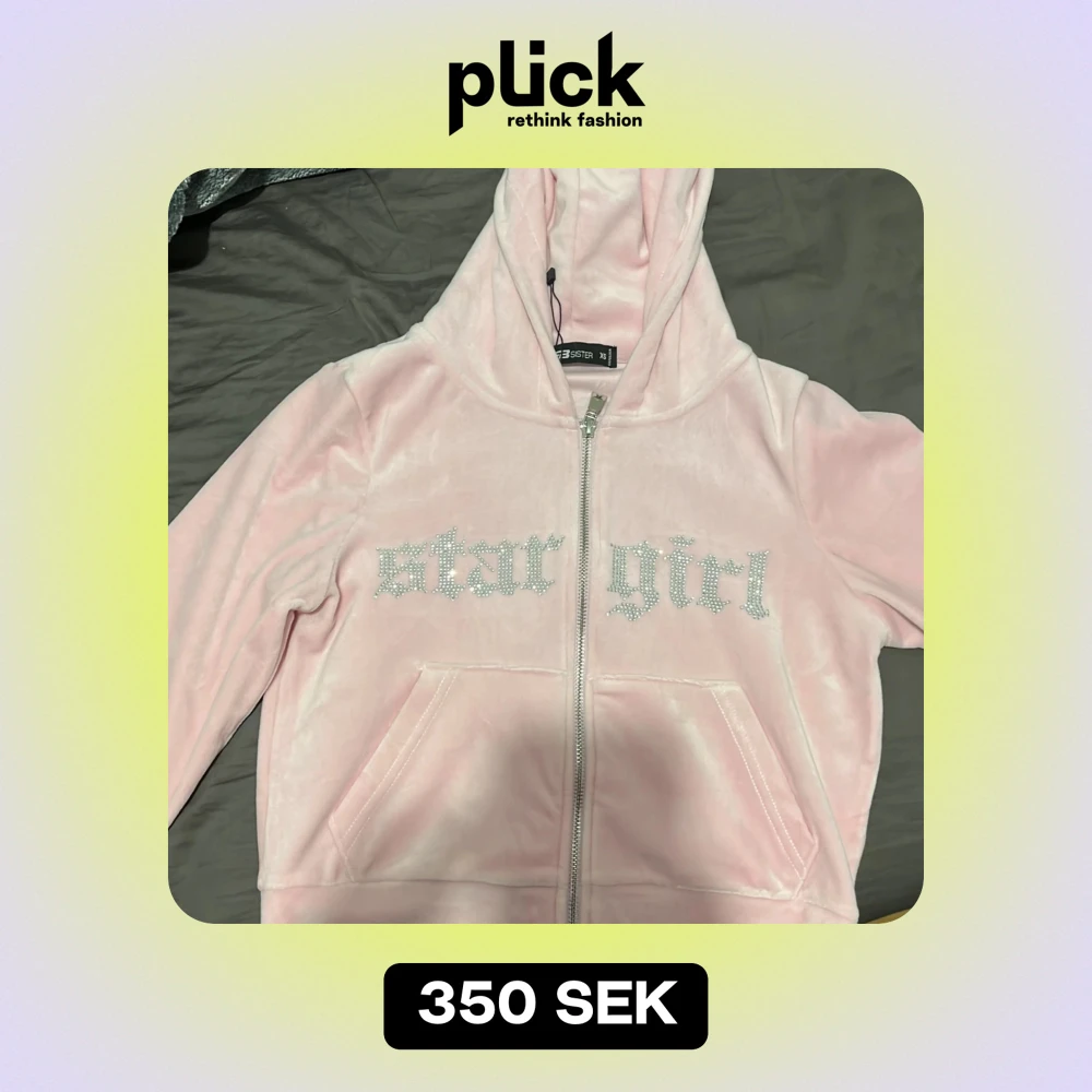 Säljer en mysig rosa hoodie och matchande byxor från Star Girl. Hoodien har en dragkedja och texten 'star girl' i glittriga bokstäver på framsidan. Byxorna har samma text på benet och en bekväm resår i midjan med dragsko.