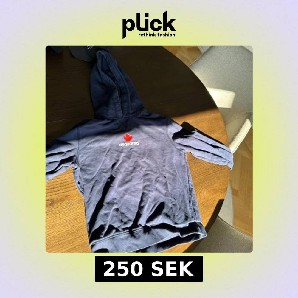 Säljer en mörkblå hoodie från Dsquared2. Tröjan har huva och långa ärmar, perfekt för en avslappnad stil.