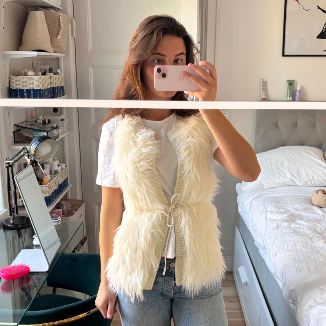 Så fi ”päls” väst kan både ha den med ett band i midjan eller utan!