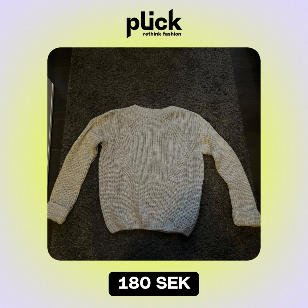 En mysig grå stickad tröja. Armarna är invikta längst ut vilket ger en snygg detalj. Den är i nyskick, aldrig använd men prislappen är inte kvar. Storlek S men skulle säga att den mer är som XS.