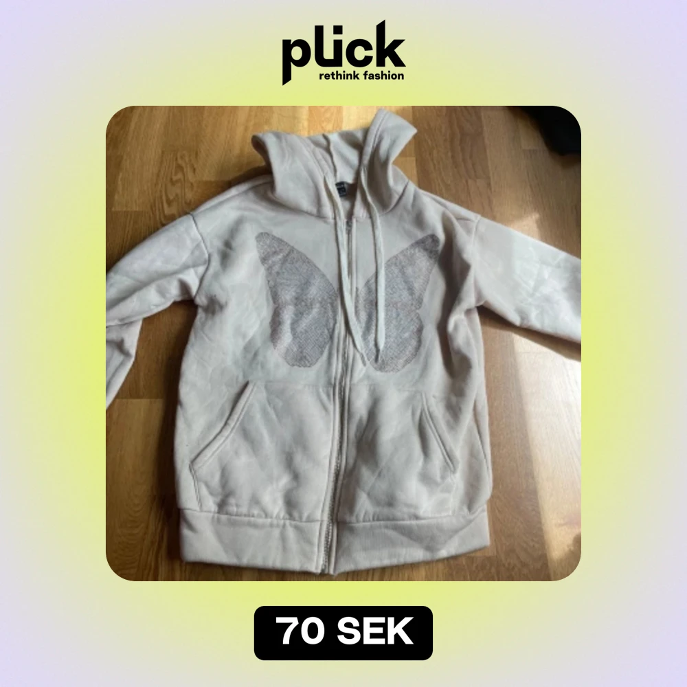 En beige kofta med fjäril på, skön och fin men använder inte längre, ser ut som ny💕