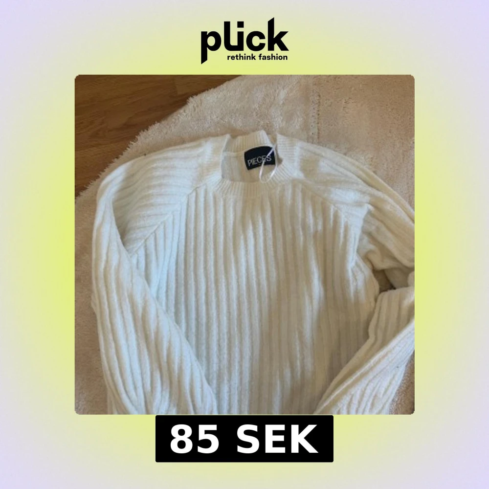 Säljer en stilren vit ribbad tröja från Pieces. Tröjan har långa ärmar och en klassisk rund halsringning. Perfekt för en avslappnad och bekväm stil. Passar bra till både jeans och kjol.