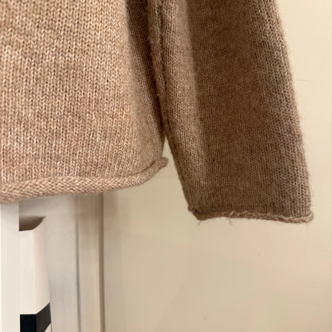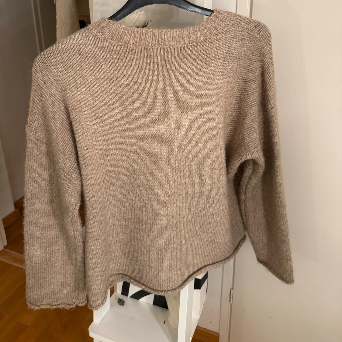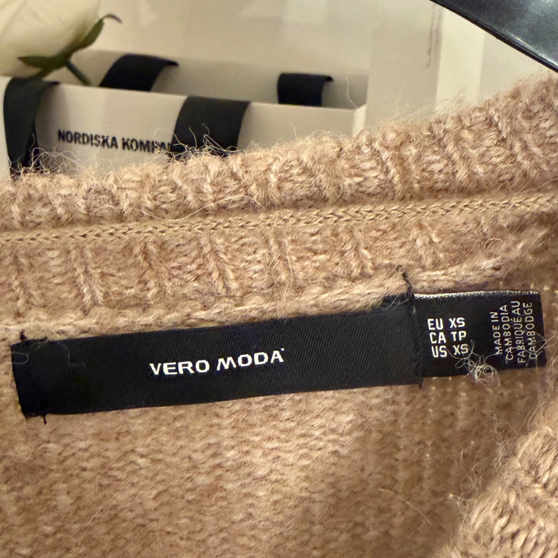 Mysig beige stickad tröja från Vero Moda i storlek XS. Tröjan har en avslappnad passform, rund halsringning och långa ärmar. Snygga detaljer på armar och vid kanten på tröjan. Den har ett väldigt skönt material och är aldrig använd.