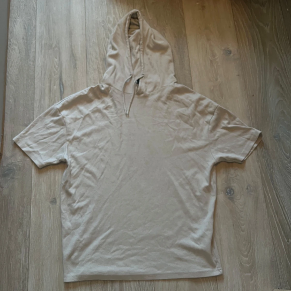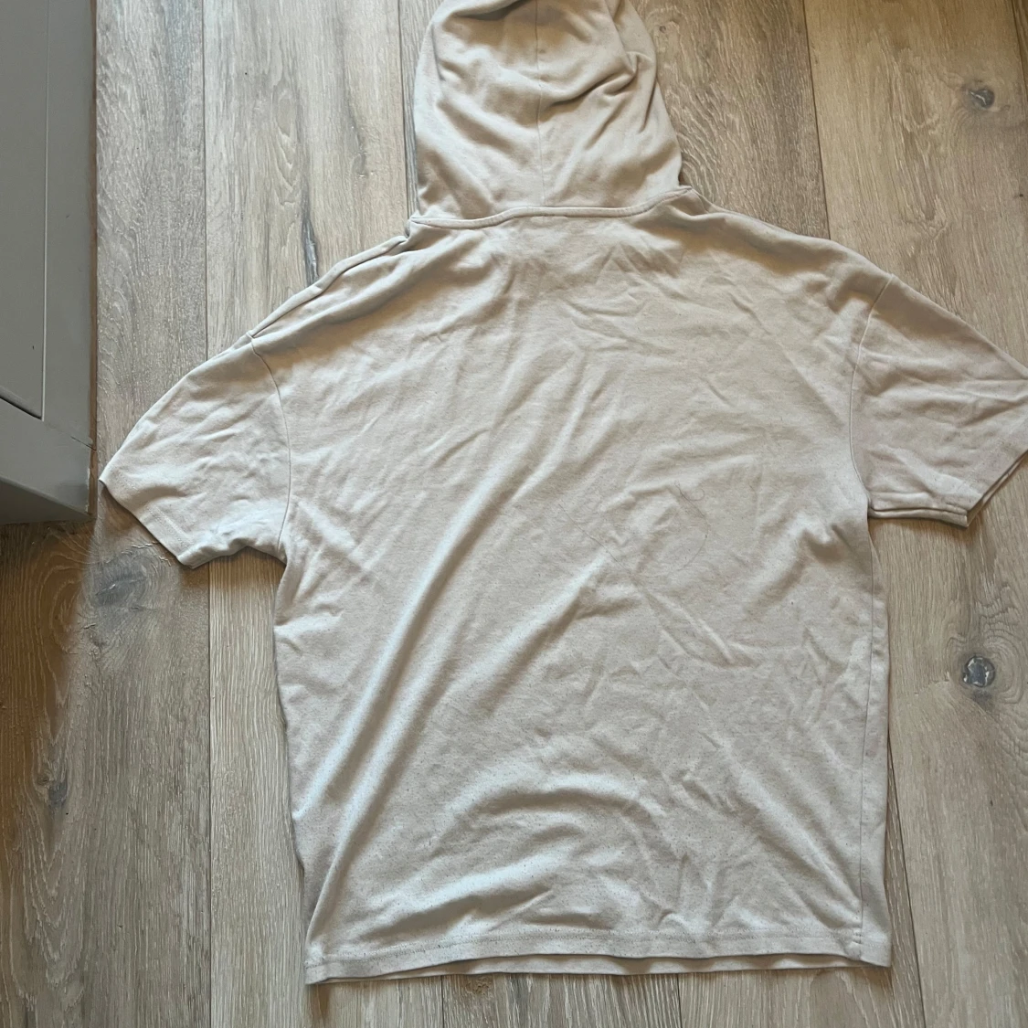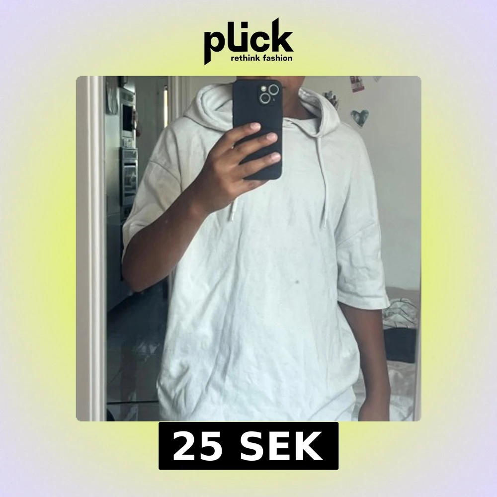 Säljer en vit hoodie från FSBN i loose fit med korta ärmar och huva med snörning. Tröjan är tillverkad i mjuk bomull och har en clean, enkel look som passar perfekt till chill dagar. Oversized känsla och riktigt skön att bära.