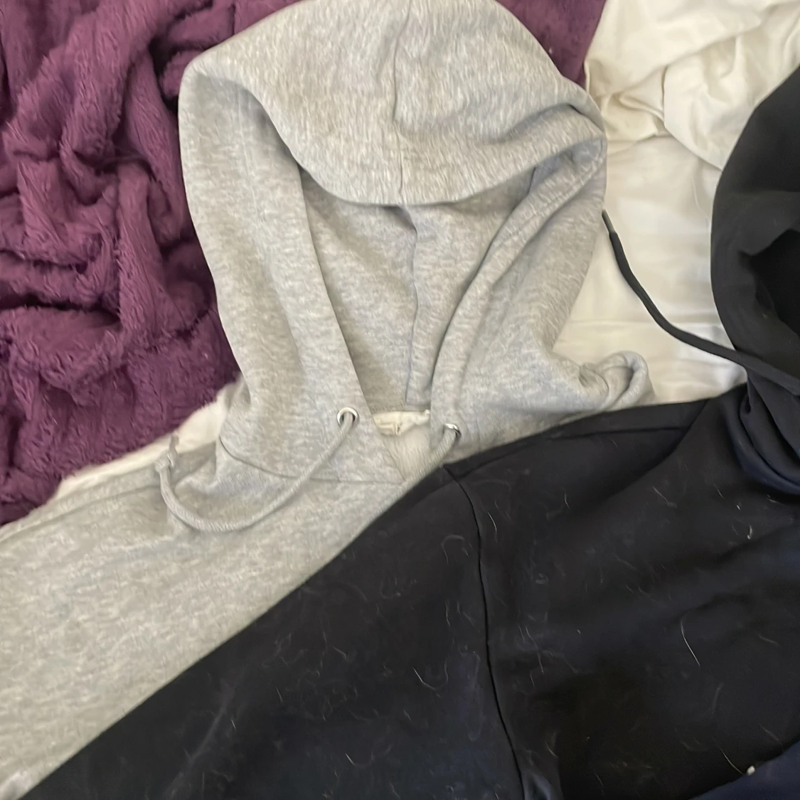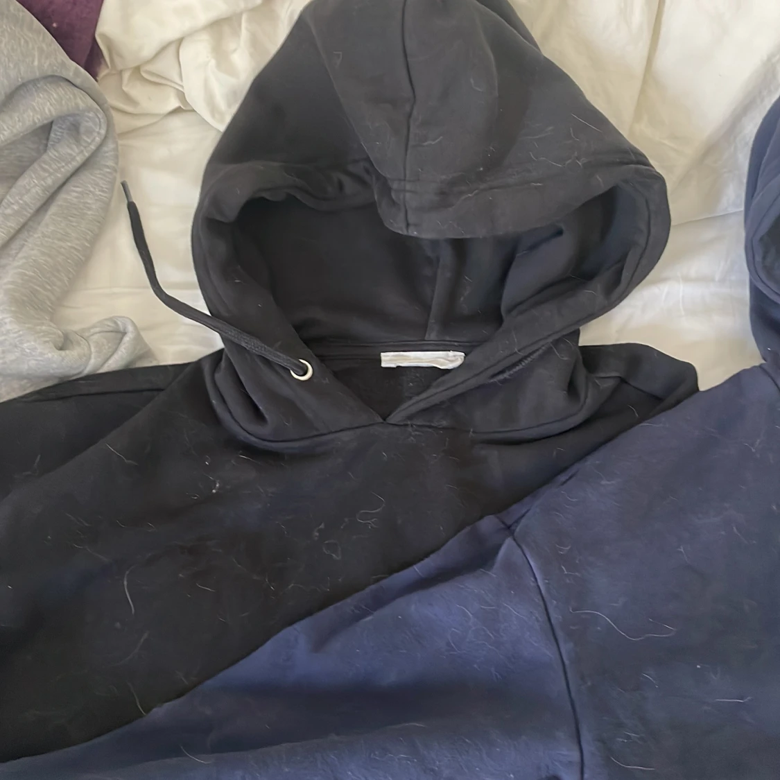 Säljer tre stilrena hoodies i färgerna marinblå, svart och ljusgrå. Alla har huva med dragsko och klassisk passform. Perfekta för en avslappnad look och funkar året runt.