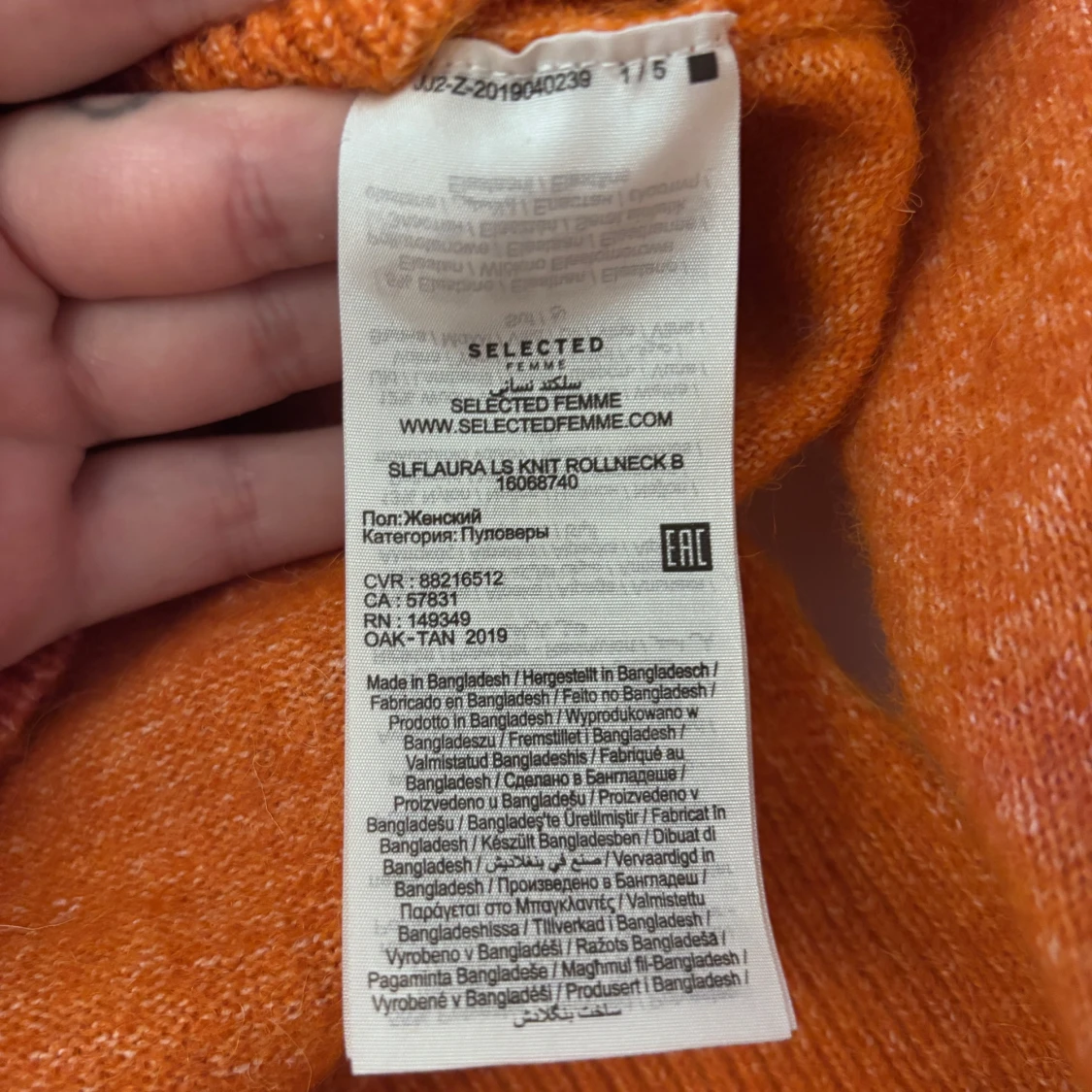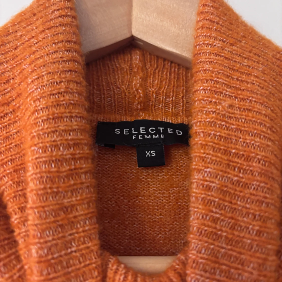 Säljer en superfin orange stickad polotröja från Selected Femme i storlek XS. Perfekt för höst och vinter med sin varma och mysiga känsla. Tröjan har långa ärmar och ribbade detaljer vid ärmslut och nederkant. Passar perfekt för en stilren och bekväm look! 🍂🧡