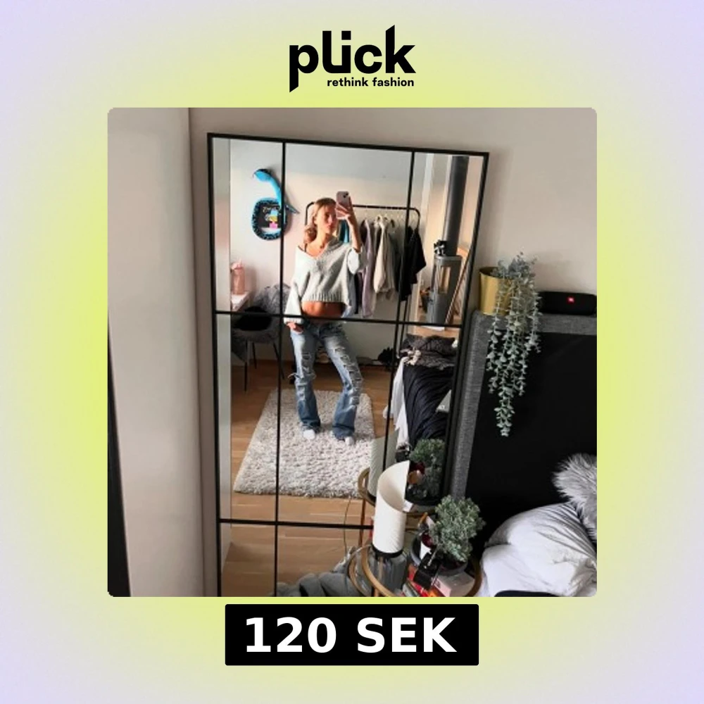 Säljer en mysig grå croppad stickad tröja med v-ringad design. Perfekt för en avslappnad stil och passar bra till jeans. Tröjan har långa ärmar och en lös passform.
