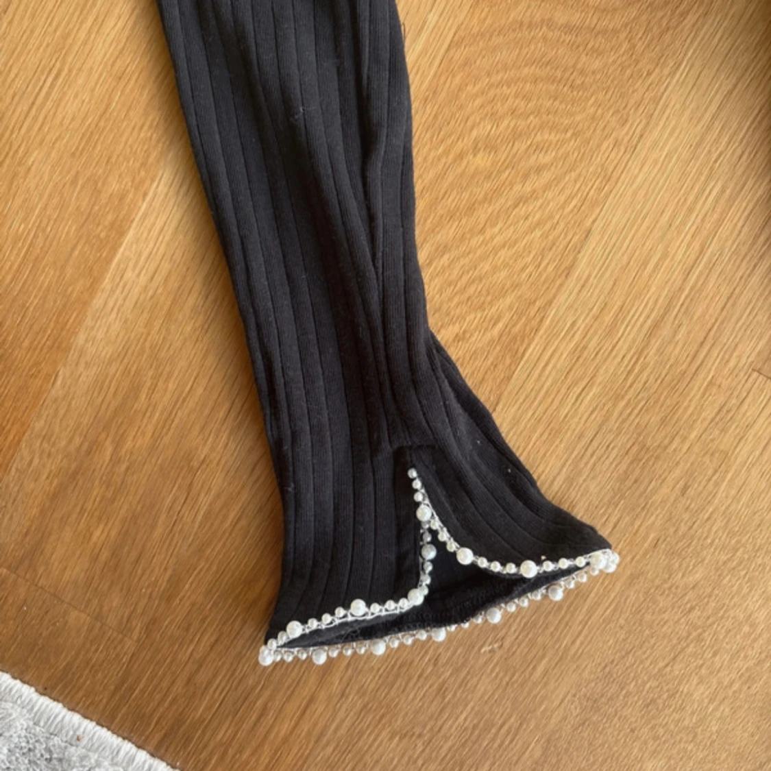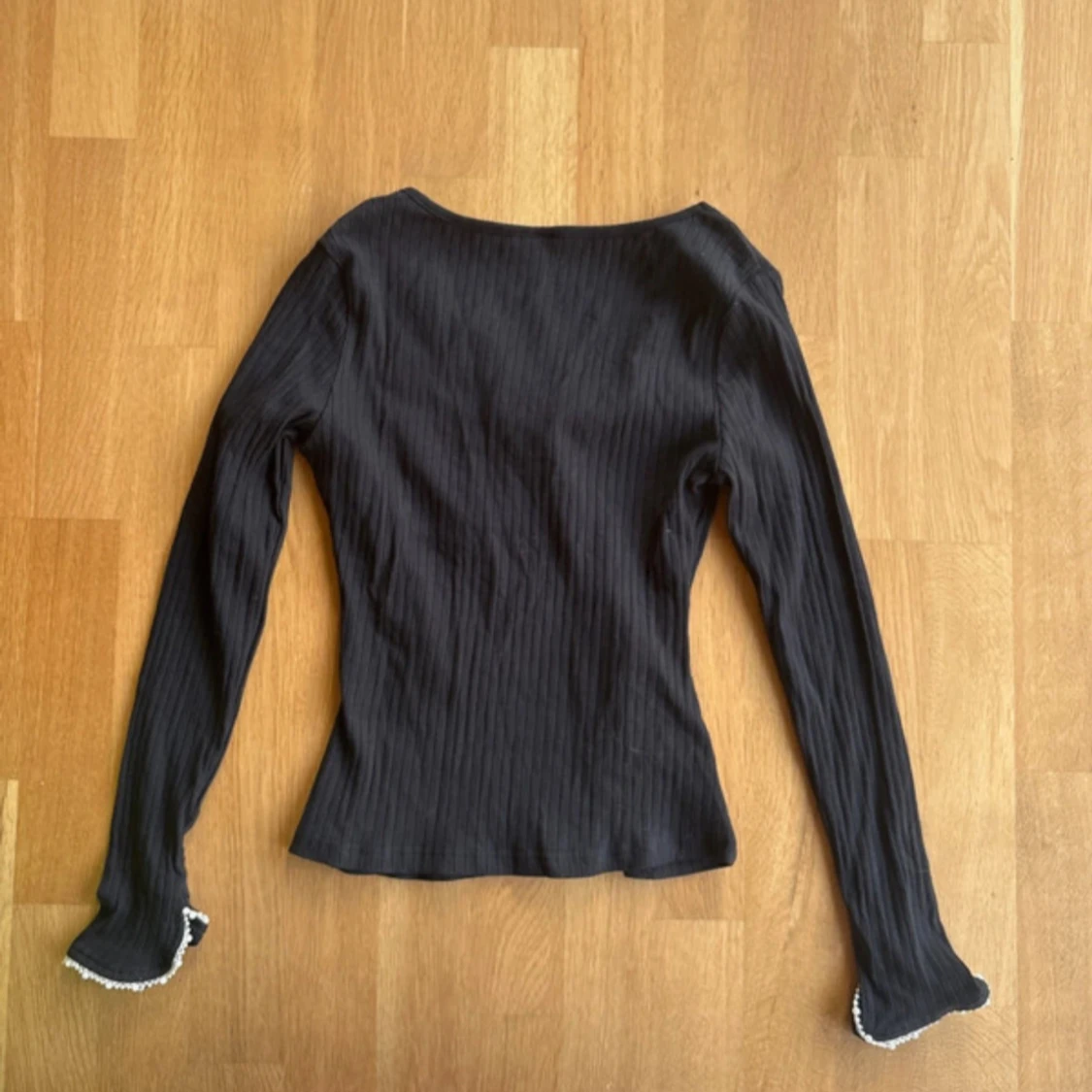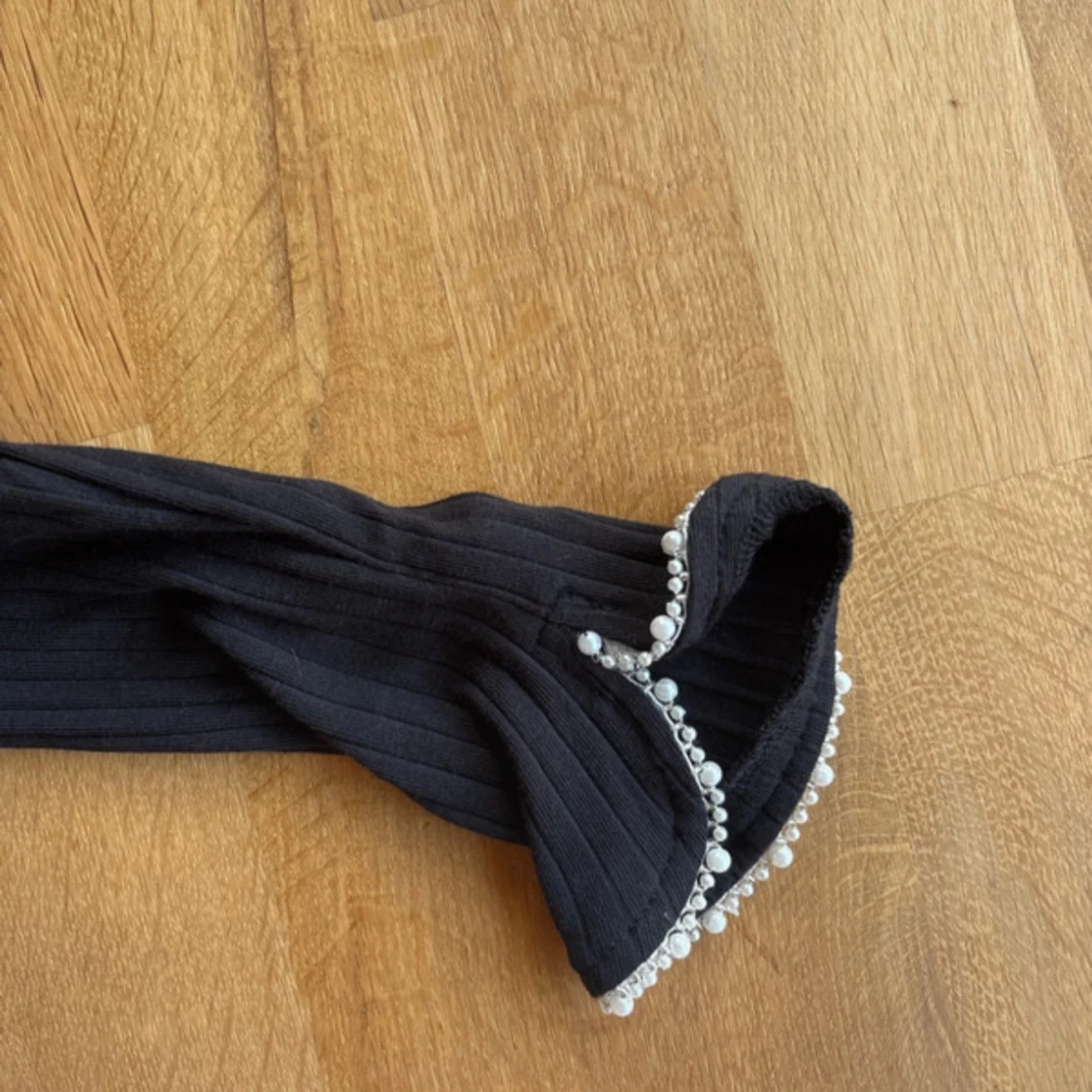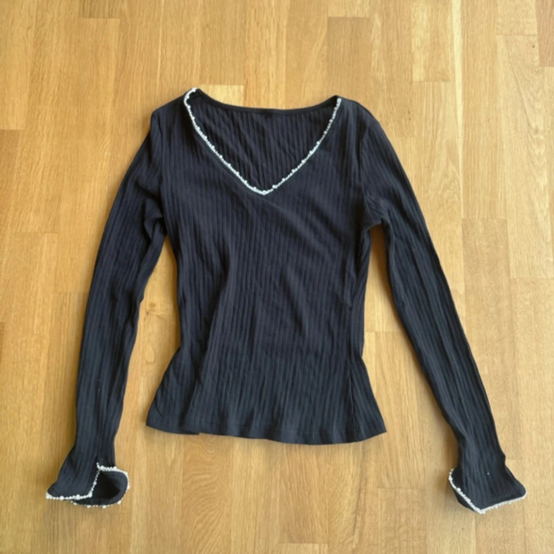 Fin långärmad tröja med pärldetaljer från Shein. Aldrig använd förut. Ärmarna har en liten slits. Lappen är borta men det är storlek xs. Tröjan är ribbad i tyget.