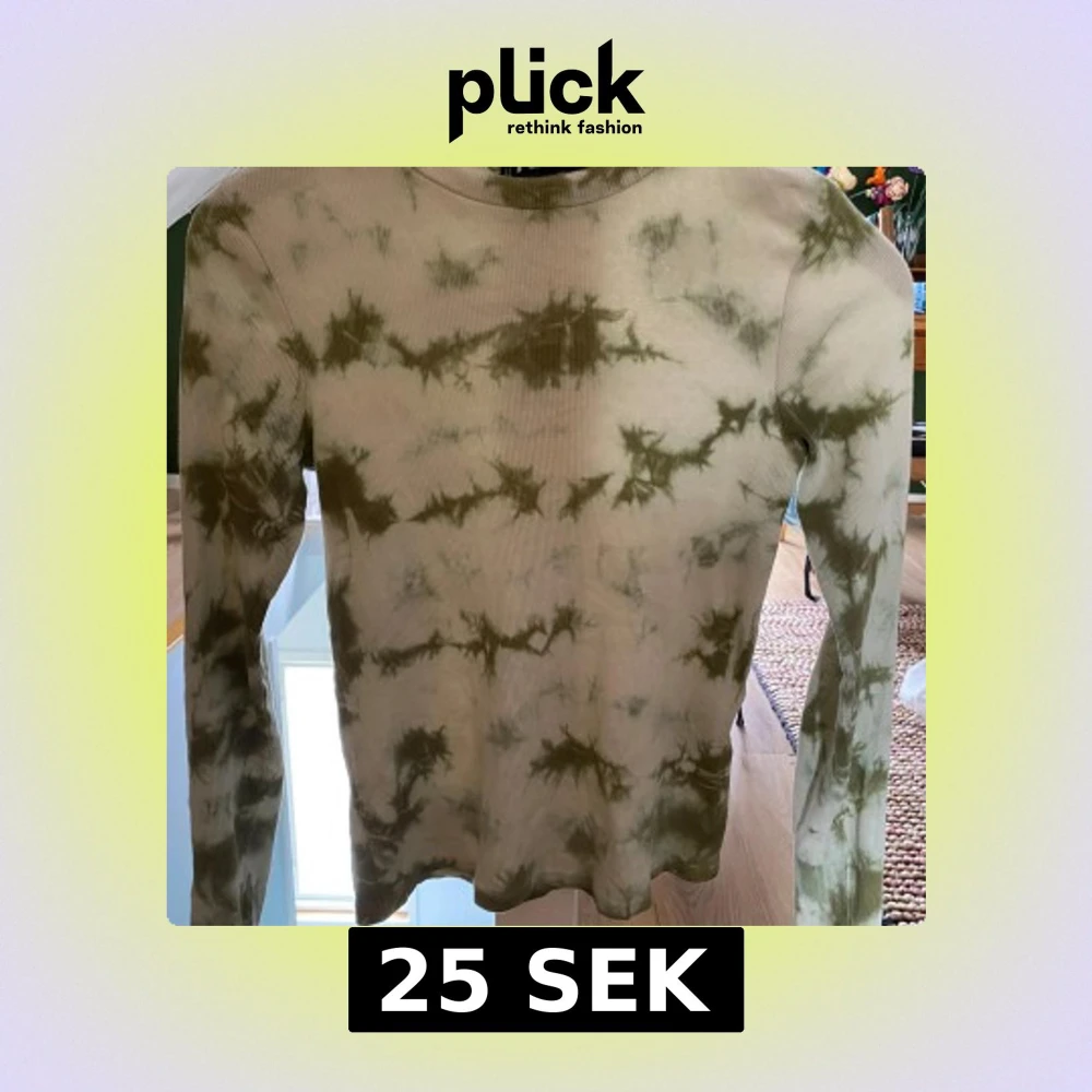 Säljer en tröja med tie-dye mönster i olika gröna färger. Tröjan har långa ärmar och en hög krage. Passar bra till jeans eller kjol. Köpt på New Yorker